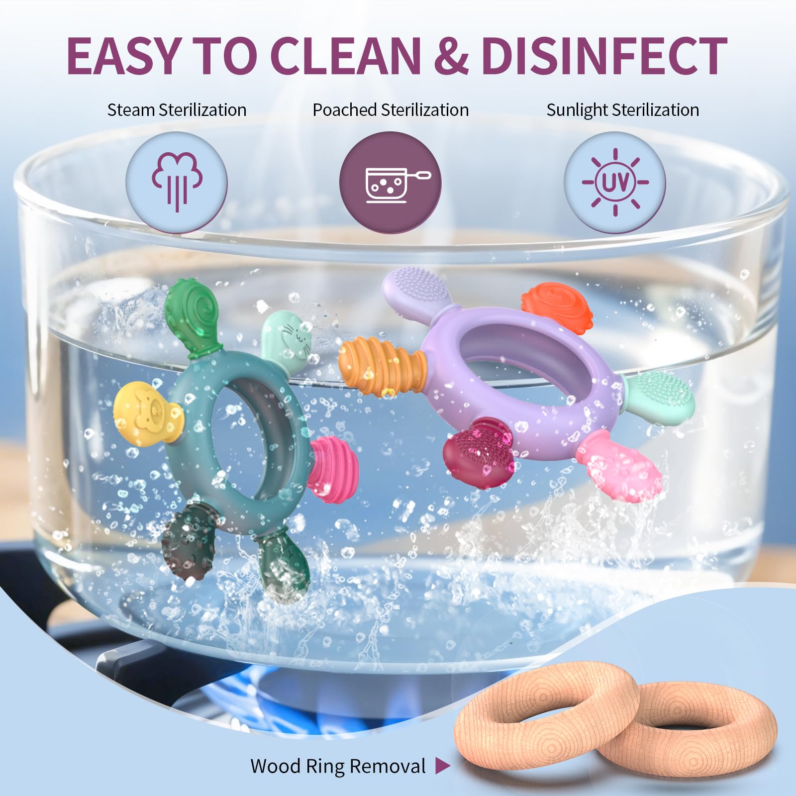 View compareakolik Teething Toys for Babies Baby Teethers Toy Teething Ring Silicone Grasping Teething Toy BPA Free Teething Newborn Accessories for Baby 0 3 6 9 12 18 Months (Blue B)