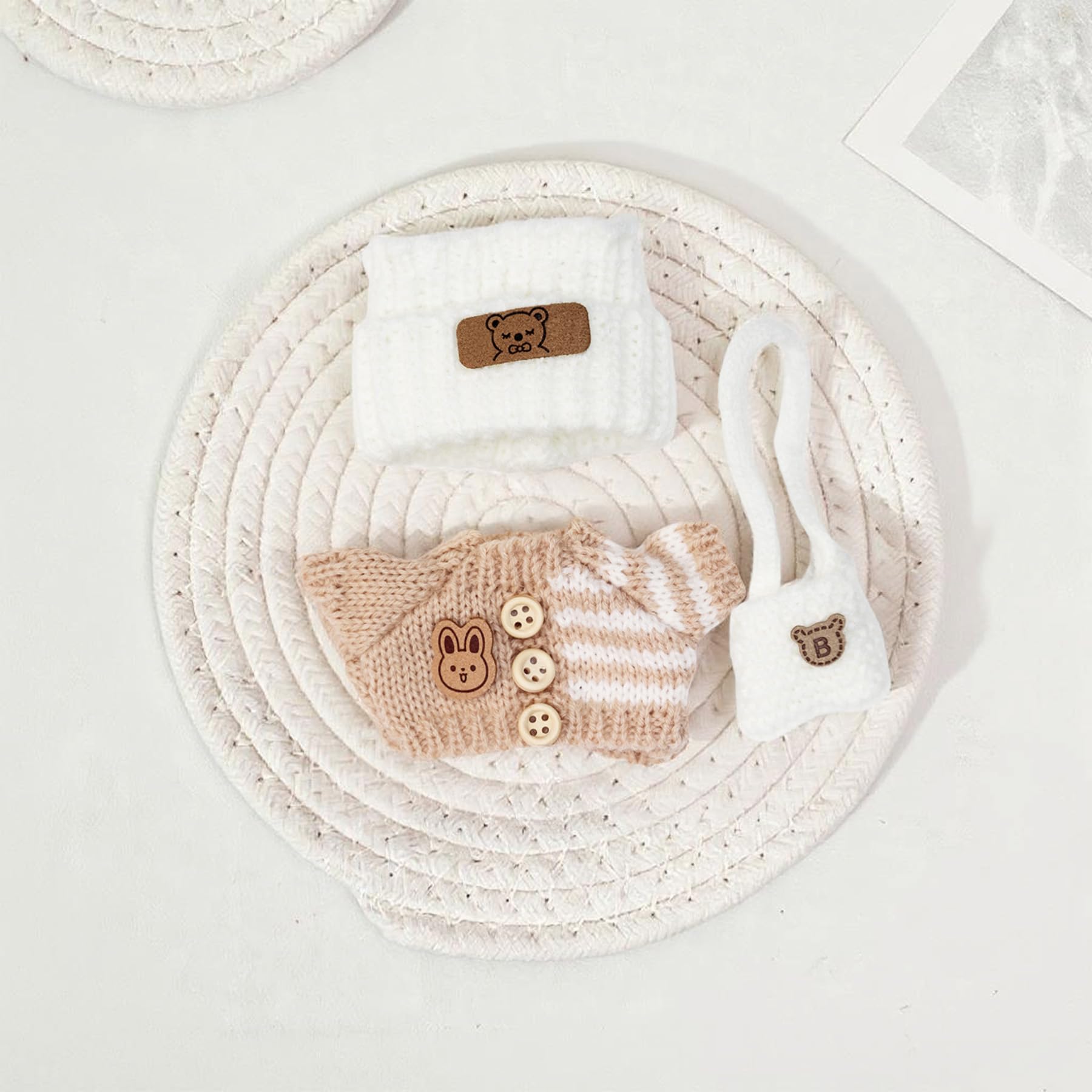 Clothes for 17cm Dolls (NO Doll) Handcrafted Crochet Outfits for 17cm Doll with Accessories Boy and Girl 4-Piece Clothes Set Cute Stylish Clothing with hat and Bag for Dolls Dress up (Khaki)