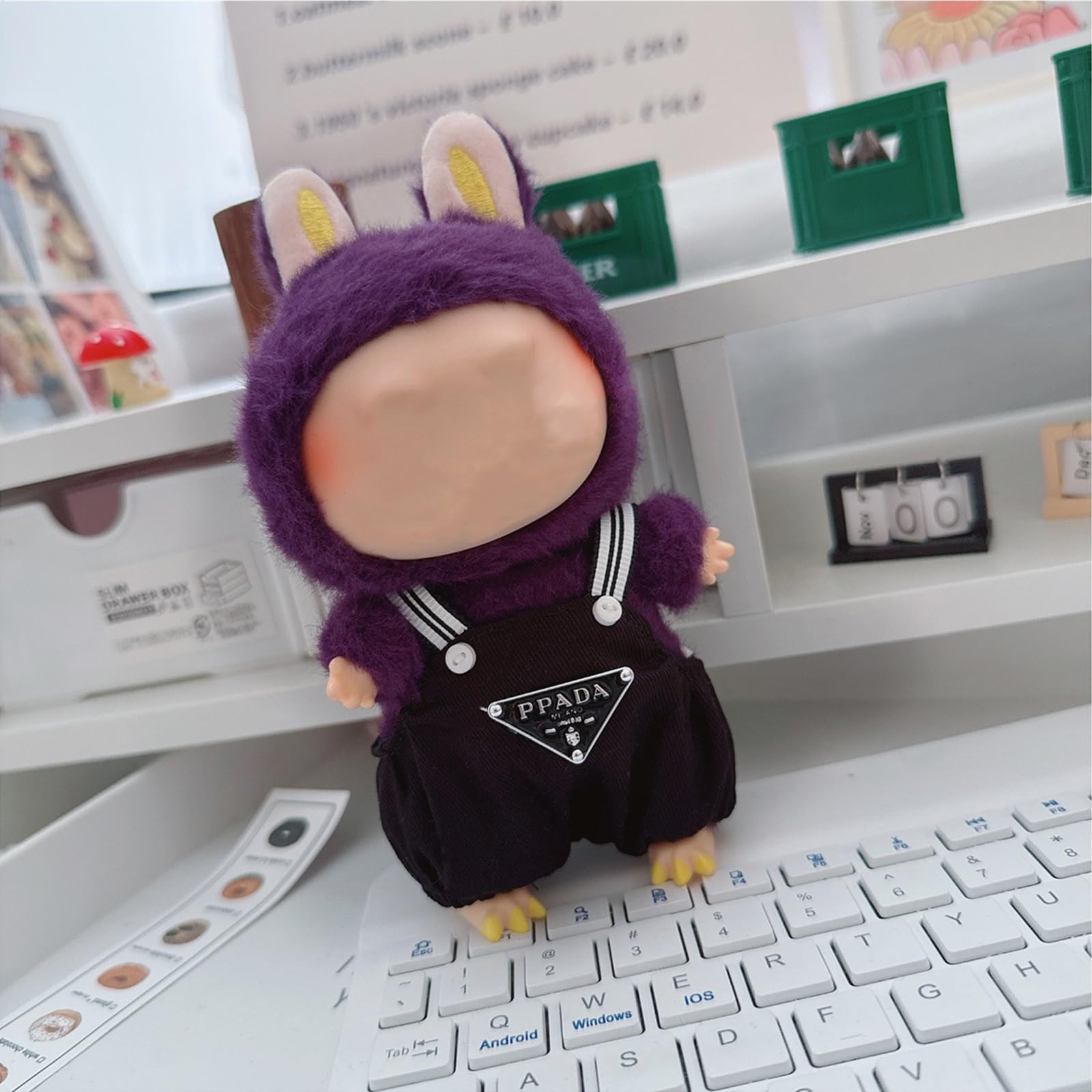 View compareClothes for Labubu(NO Doll) Hat & Overalls Set for Labubu Clothes 15cm/17cm Dolls Accessories Suit Doll Outfit Stylish Clothes(Black)