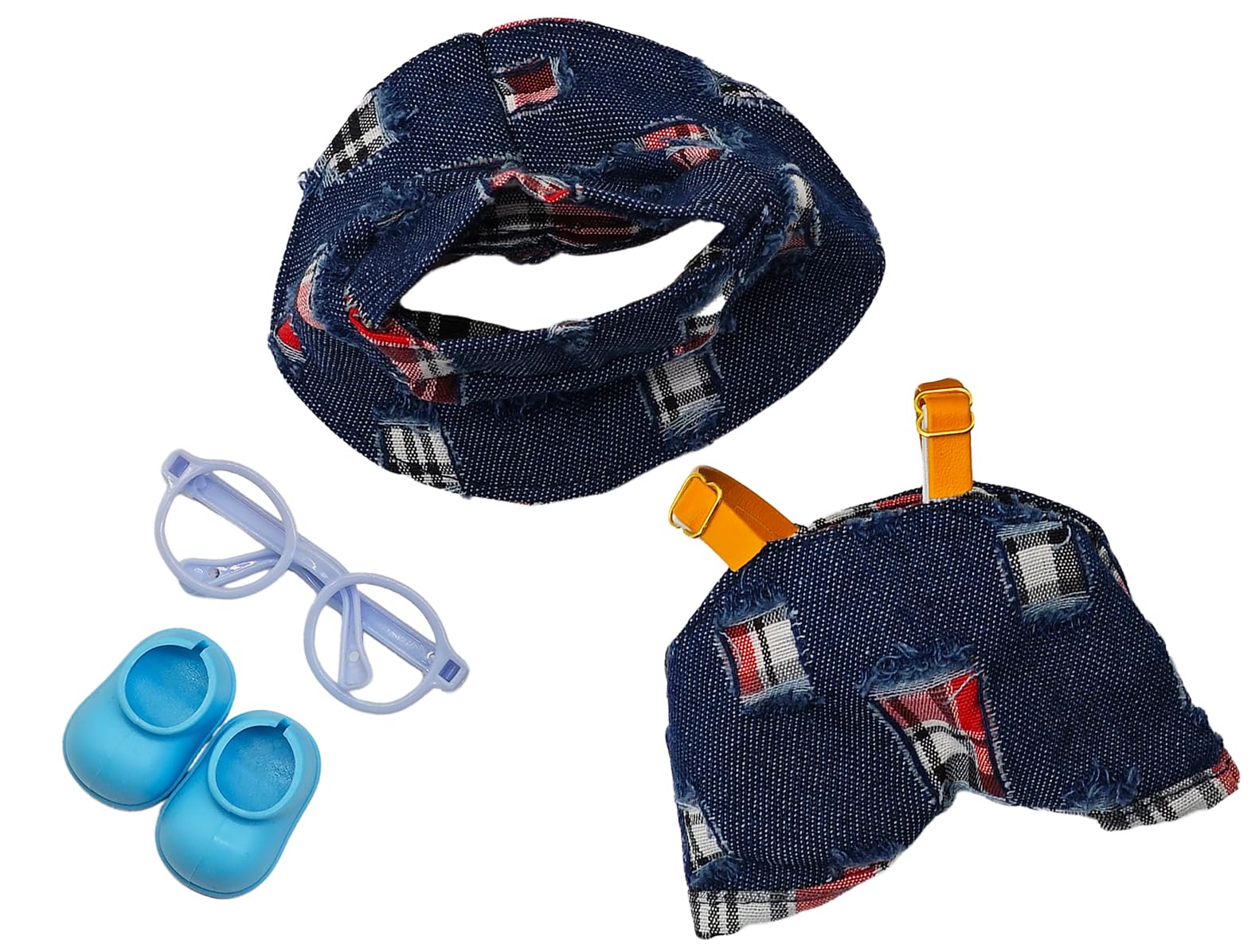 Doll Clothes Accessories Set for 17cm Funny Outfit Set Compatible with 17 cm Adorable Doll Clothing Set Cute Clothes for Dress up Unique Style No Doll Included (Denim Blue)