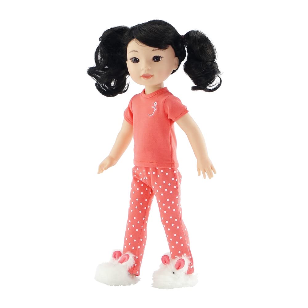 This Adorable 14-Inch Doll Pajama Set From Emily Rose Is Perfect For Slumber Parties And Overnight Stays. Crafted With High-Quality, Luxurious Fabrics, The Set Includes A Coral-Colored Top With The Emily Rose Logo And Coordinating Polka Dot Pajama Pants With An Elastic Waistband For Easy Dressing. The Set Also Comes With A Cozy Pair Of Fluffy White Bunny Slippers, Completing The Comfy And Stylish Look. Packaged In A Lovely Emily Rose Gift Box, This Doll Outfit Is Designed To Fit Most 14-Inch Dolls, Including Wellie Wishers, Glitter Girls, And Hearts For Hearts Girls. Durable, Hand-Washable, And Safety-Tested, This Set Is A Must-Have For Any Doll Enthusiast. A Perfect Children'S Gift For Birthdays, Christmas, Valentine'S Day, Easter, Halloween, Special Occasions, And Every Day Imaginary Play! *Doll Not Included*