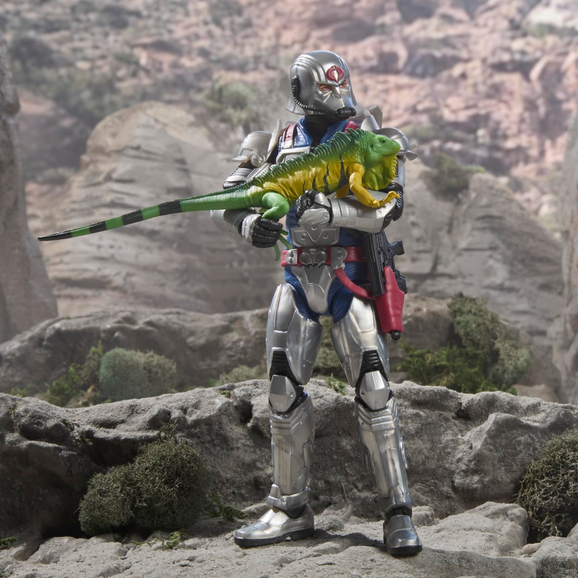 G.I. Joe is a highly skilled on-demand special operations force of men and women from around the globe tasked with defending the world from Cobra a ruthless criminal organization bent on total domination. Wherever theres trouble G.I. Joe is there. New to the G.I. Joe Classified Series line Cobra Commander With Combat protective covering comes ready for adventure with multiple points of articulation for high poseability. This Cobra Commander With Combat protective covering figure contains 7 character-inspired accessory pieces including an alternate head to switch between human and serpent 3 alternate hands backpack pet iguana Serpentor and weapon accessory. To protect their leader in the heat of battle the best technical minds of Destro's armament factory created a special suit of combat protective covering for Cobra Commander. It's rumored that his helmet has an anti-tamper device with a direct hook-up to a half-pound of plastic . G.I. JOE and HASBRO and all related protected designs and logos are protected designs of Hasbro Inc.