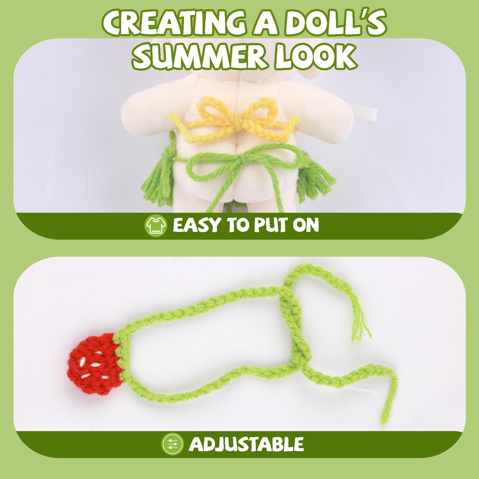 View compareHandmade Clothes for Doll 5-Piece Set Woolen Crochet Doll Clothes 6.7in/17cm Outfits Cute Accessories Includes Chickadee Shoes+Straw Skirt+Bikini top+Floral Headband+Strawberry Backpack