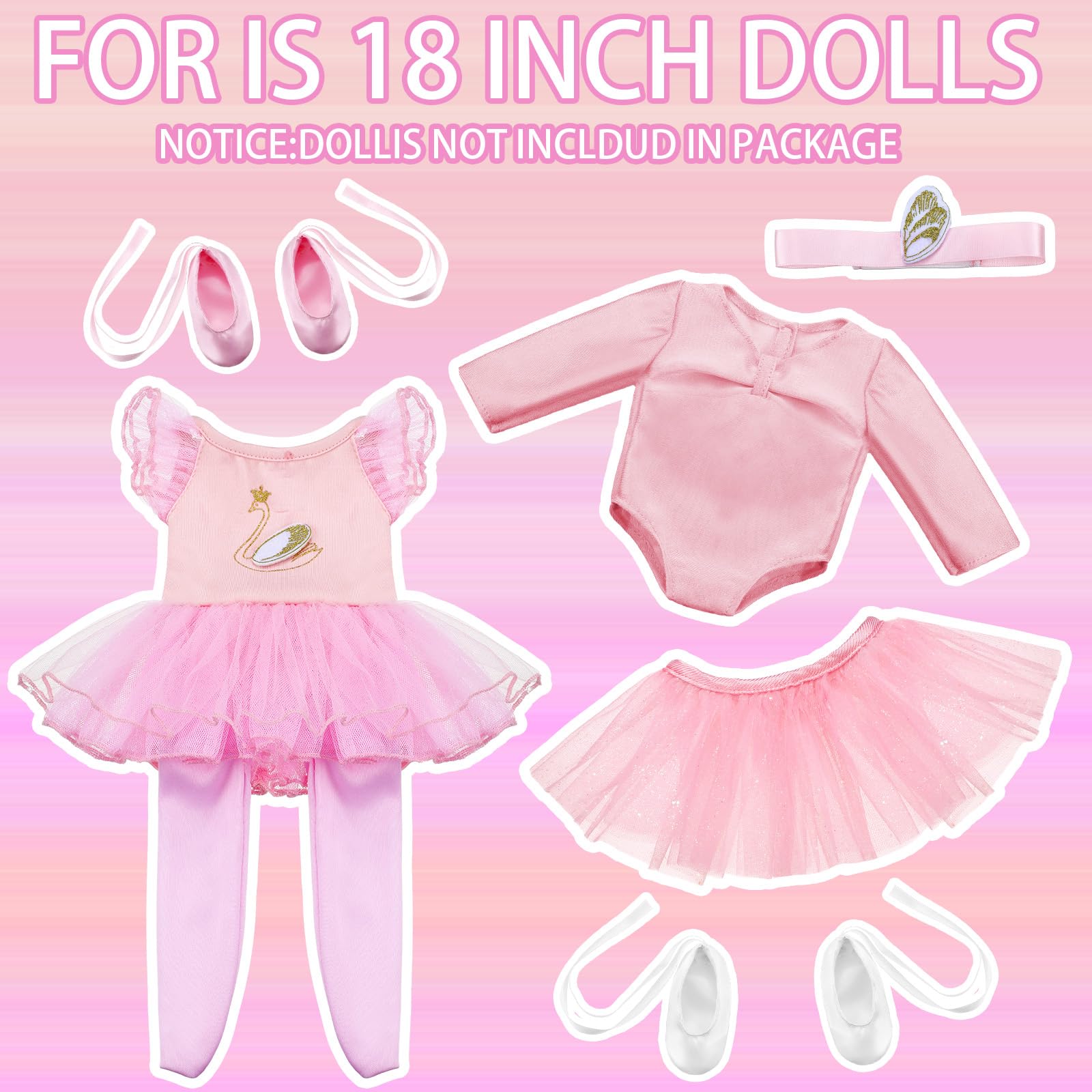 Kajaia 8 Pcs 18 Inch Doll Ballet Ballerina Outfits 18 Inch Doll Clothes and Accessories Ballet Tutu Dance Dress Ballet Shoes Headband Doll Clothes Gifts