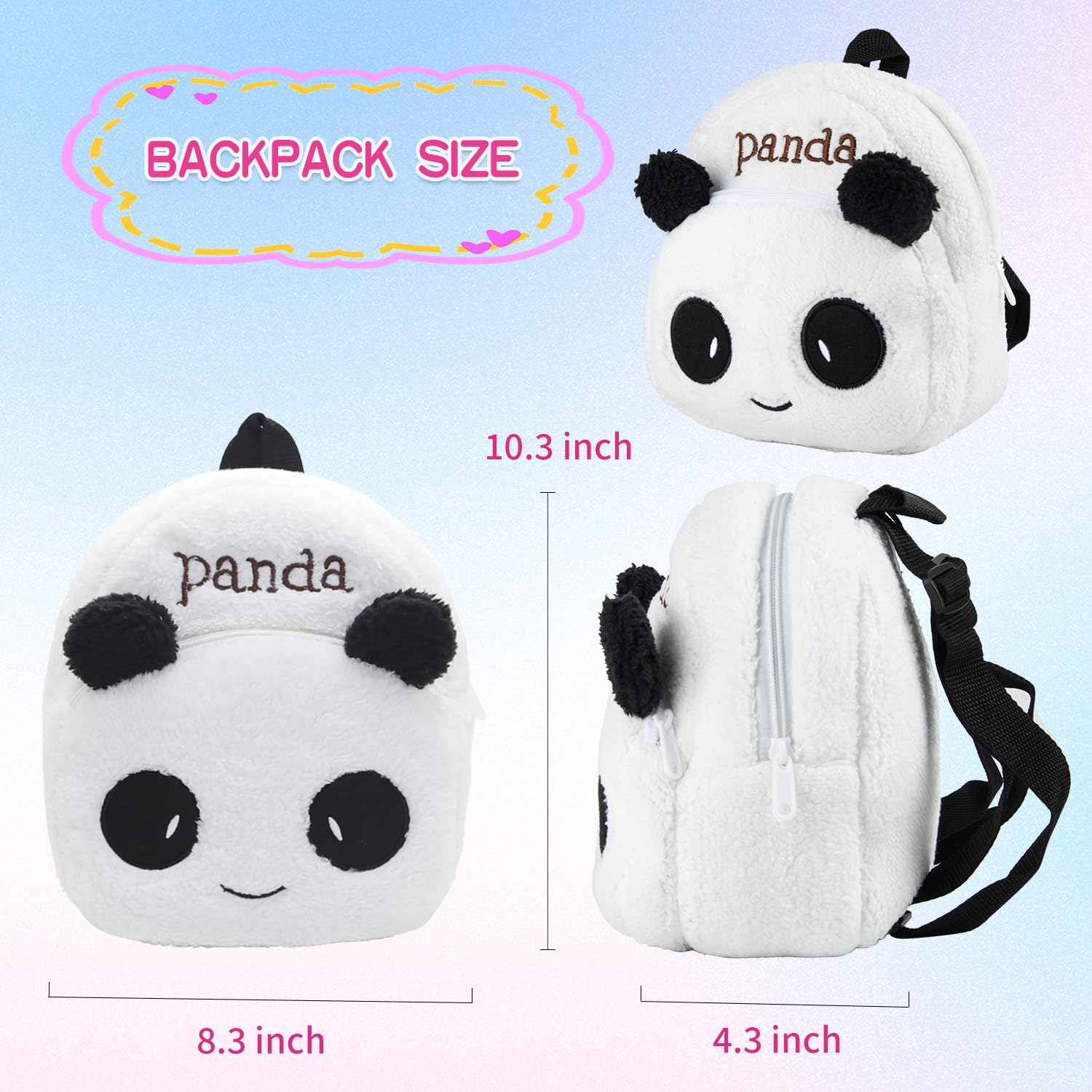 Our limited availability designs reborn baby dolls clothes panda outfits accesories 11 pcs set with backpack&diaper super stylish and cute perfect fit for 17-19 Inch reborn baby girl&boy. Our reborn dolls clothing panda outfits accesories stylish and cute easy to care can be washed. All seasons are suitable for wear. Panda backpack*1 Panda coat*1 Dot bodysuit*1 Dot trousers *1 Panda shoes *1 pair Diaper*4 Doll comb*1 Feeding bottle*1. Reborn doll is not included in the package only clothes and accessories. The panda backpack which is easy to carry durable and has a large space which can hold the clothing accessories so that makingit easy for kids to play everywhere. well-made fabrics comfortable texture children can play safely and securely. New in fashion perfect unique gift for birthdays holidays or other special occasions. This reborn baby dolls clothes panda outfits accesories 11 Pieces set will bring a lot of fun to your baby in playing with their baby doll. You will love this popular reborn doll clothes panda outfits accesories set it will makes your reborn doll more fashion and lovely.