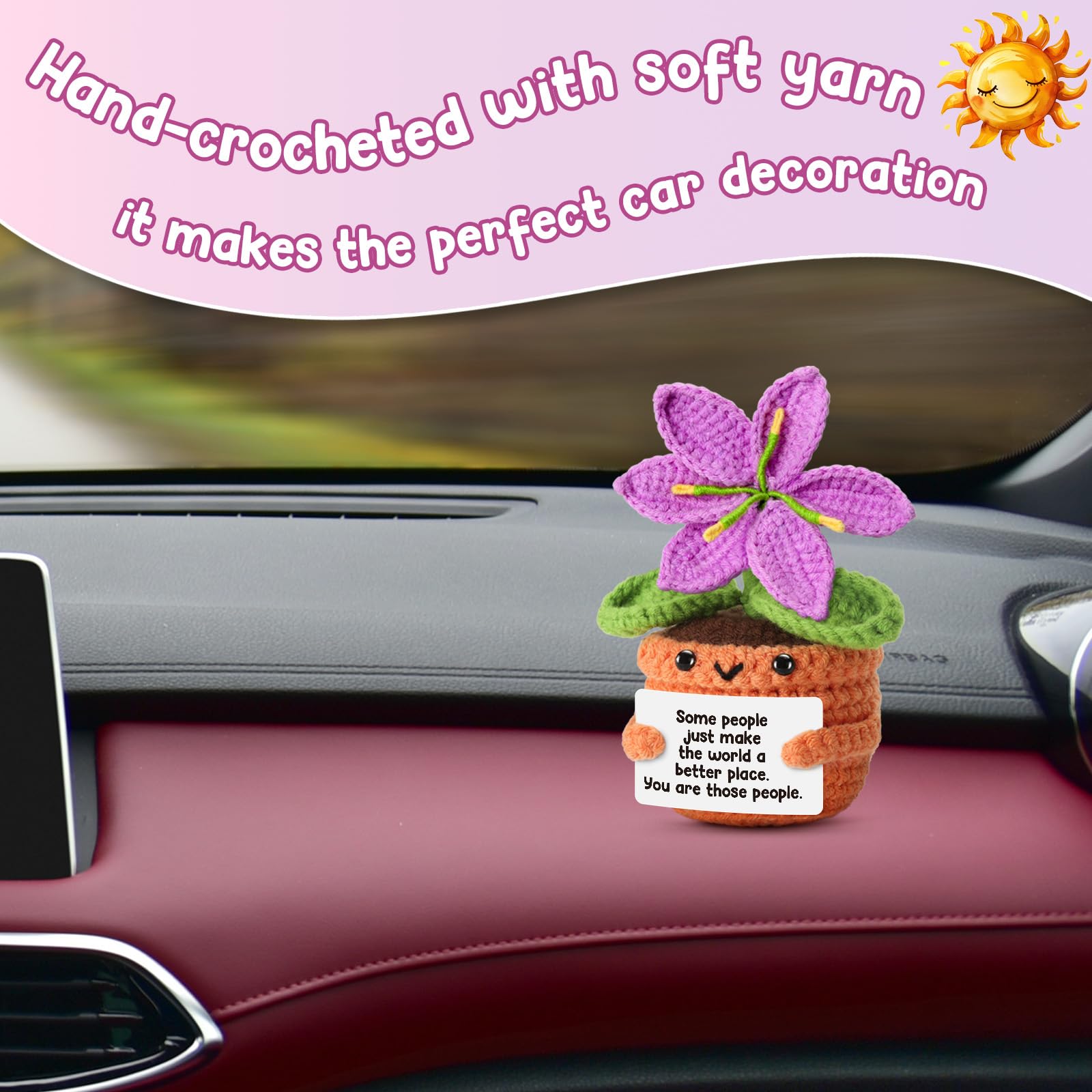 Show someone how much they mean to you with this adorable Handmade Crochet Lily Flower Doll. Featuring a warm message-Some people just make the world a better place. You are those people. -this little bloom is a symbol of appreciation and emotional support. Handcrafted with care using soft, colorful yarn, its designed to spread positivity wherever it goes. Whether youre saying thank you to a coworker, showing love to a teacher, or celebrating a close friend, this cheerful potted plant is the perfect reminder of how much they are valued. Thoughtfully sized to display on a desk, nightstand, or dashboard, its a unique alternative to traditional thank-you cards and floral arrangements. Let this mini companion deliver your gratitude in the most heartwarming way.