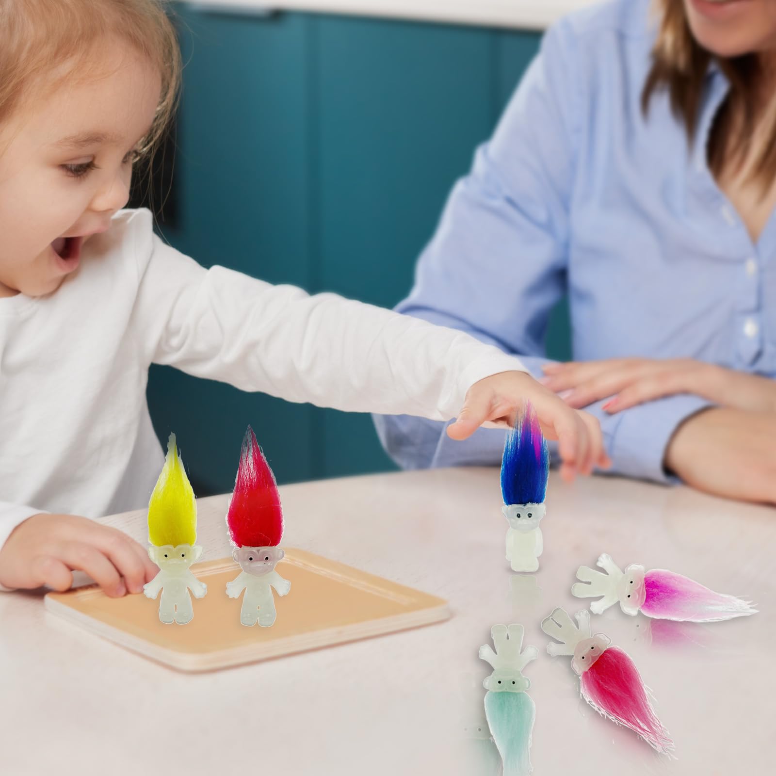 ?Value Package?You will get 10pcs/20pcs/30pcs/40pcs mini troll doll figures with all kinds of different colors, the quantity is ample and the colors are rich, They can meet your diverse needs for creating and decorating. The luminous troll dolls will also bring different visual experience to your creation. ?Proper Size? Luminous troll dolls is about 2.36inch(including the hairs),The body part is about 1.2inch., Small and compact, easy to carry and place.The mini troll dolls are perfect for children as Cake Toppers?Christmas gift, Halloween gift, Birthday gift, Valentines Day gift, Childrens Day gift, First-day-back-to-school gift etc., also,these adorable movie figures suitable for themed party.Perfect size also fits in Easter egg. ?Material?The cute troll dolls is made of high quality PVC material ,The material has passed the international safety inspection certification,Safety and environmental protection.Please rest assured to buy. ?Endless fun to play?Inspired by a movie, this adorable troll doll is small characters with big personalities, kids will be obsessed with playing with this cute doll. Playing this lucky troll with your kids helps add interaction with them, allowing both of you have fun! ?Pay attention?Absord the light at day time or use a flashlight to shine the troll dolls,they can glow in the dark at night.