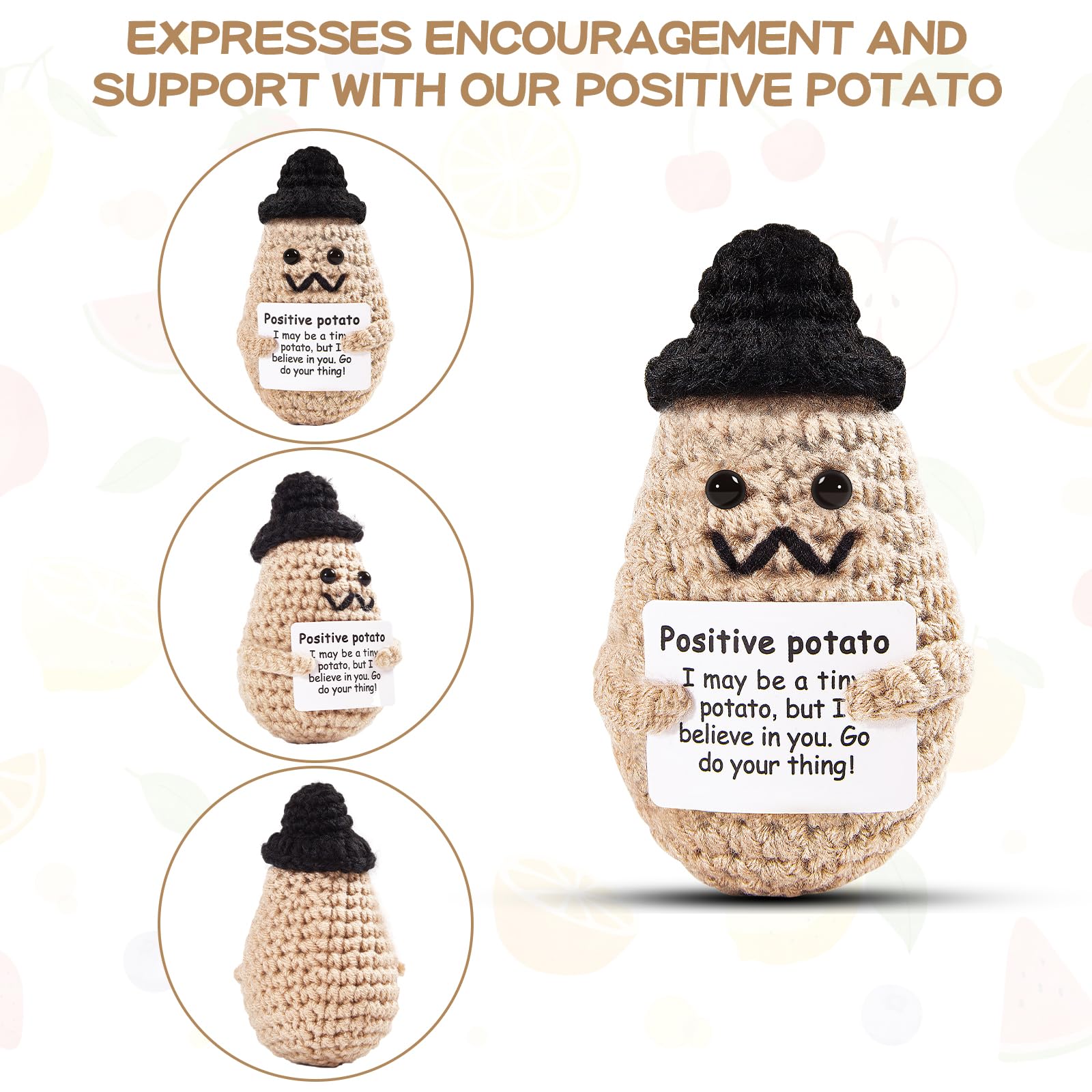 Dafuriet Funny Positive Potato Crochet Gift, 3.7In Handmade Kintted Wool Doll With Emotional Support Positive Card, Cute Cheer Up Gifts For Friends Dad Birthday Party Desktop Decors(Handsome Potato)