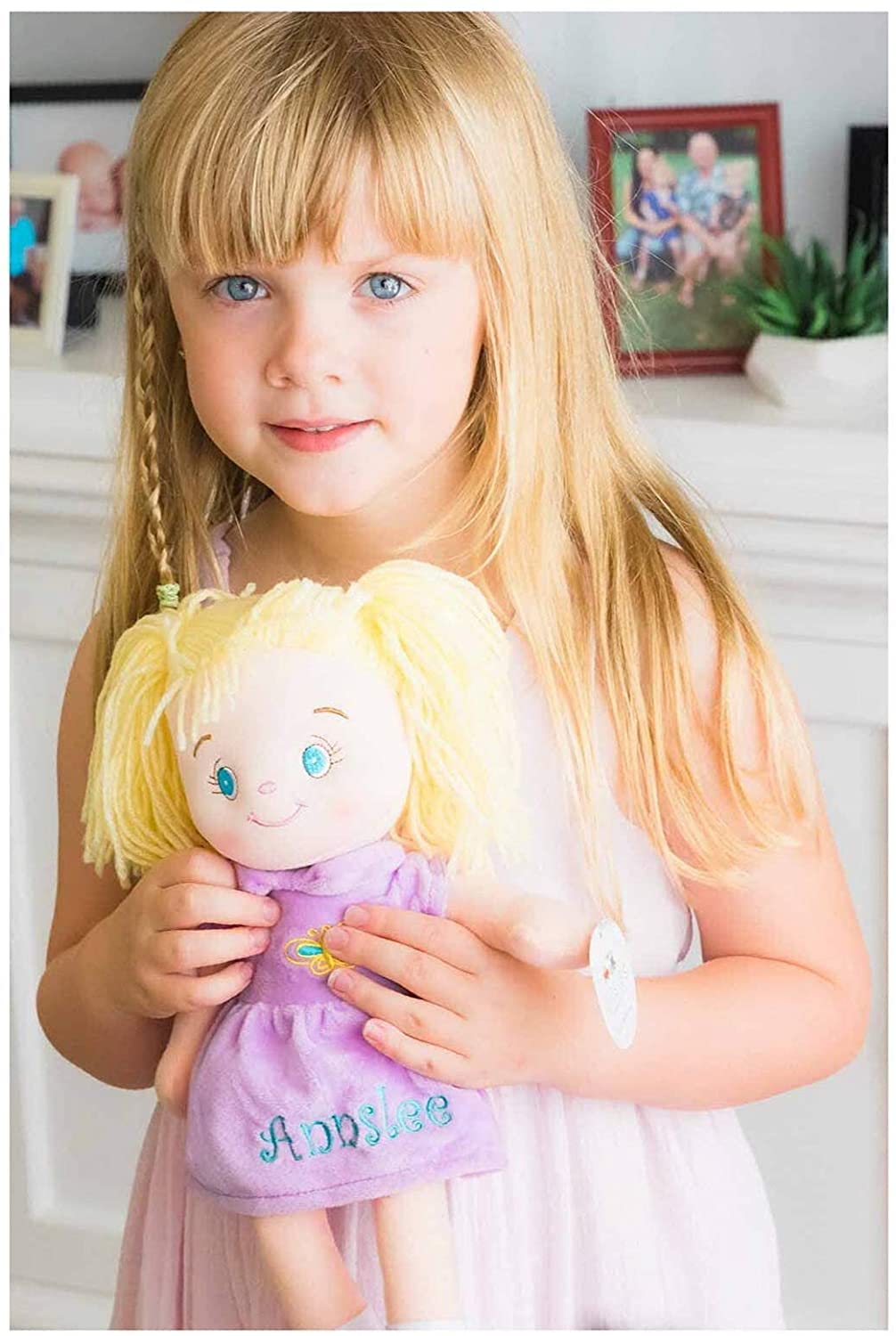Snuggles are going to be so much more comforting for your little one. Our Butterfly Snuggle Doll is as soft and cuddly as can be. Her beautiful pigtails are made of yarn and makes her so cute! Facial features are all embroidered for your child's safety. Your Little Girl will love her Butterfly Snuggle Doll. A great gift for birthdays, Christmas or just to tell her how special she is to you. Dibsies will personalized your doll up to 9 letters max. *** Dibsies adds your the baby girl's name (up to 9 letters max) in embroidery as shown. *** *** Made of 100% polyester fiber material, dolls hair is made of yarn *** *** Doll stands 15 inches tall *** *** Eyes and other features are embroidered *** *** Surface Washable *** *** Please make sure all plastic attachments and packaging are carefully discarded before giving to a child under 3 years of age. With all long haired toys some hair loss is unavoidable. This may present a choking hazard to babies and small children. Please bear that in mind when making your selection. ***