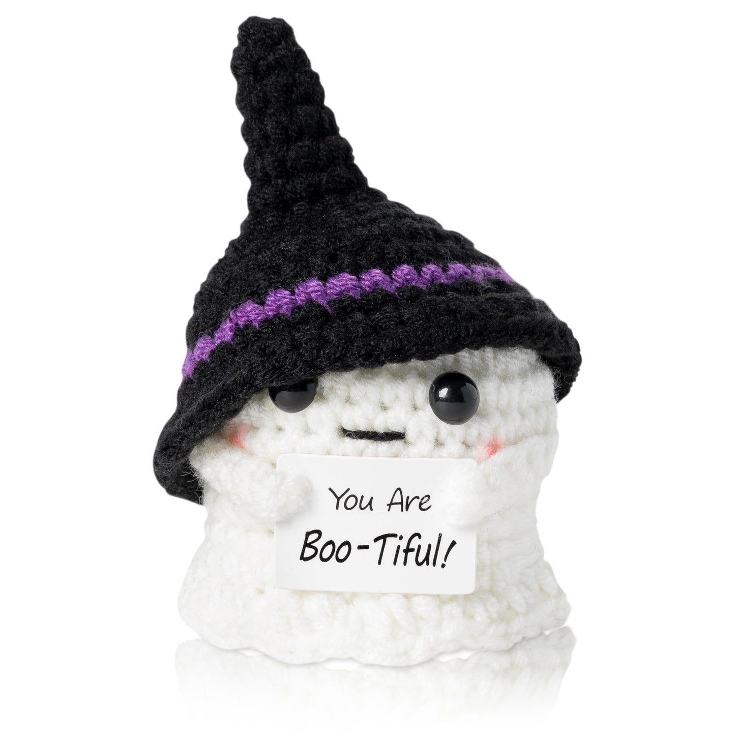 Djianrang Halloween Ghost Handmade Positive Crochet With Inspirational Card Emotional Support Wool Ornaments Mini Positive Knitt