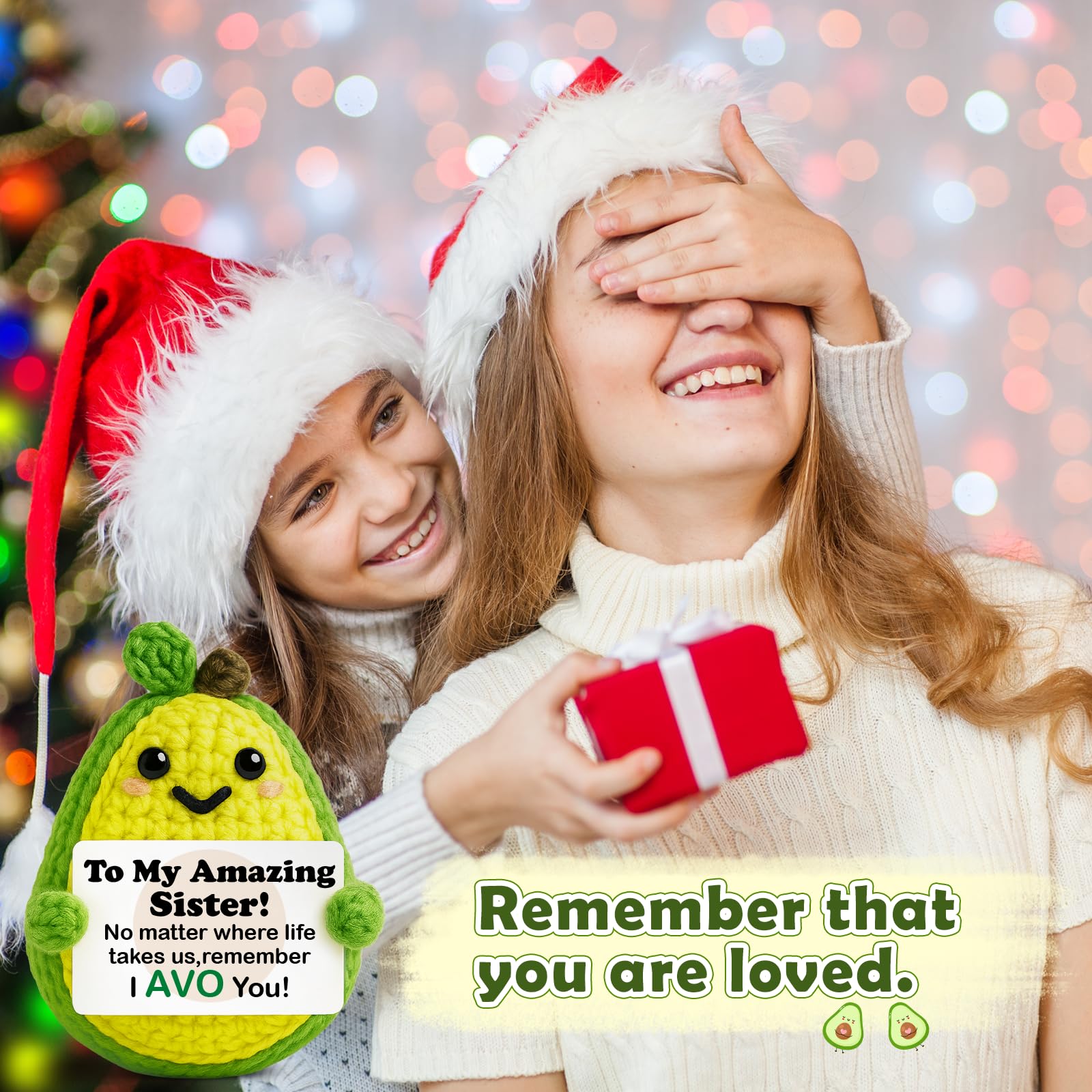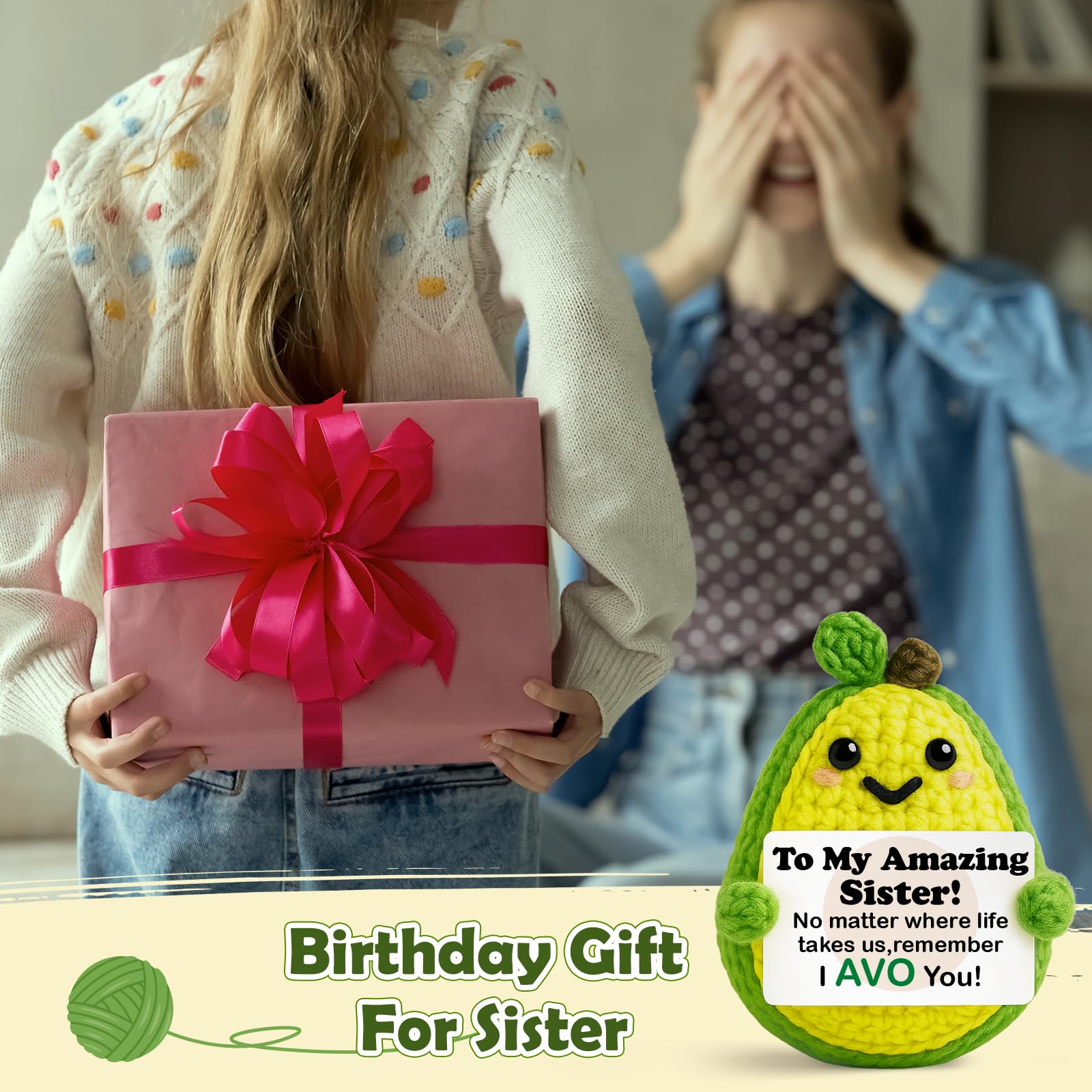 GiftMark Gifts for Sister Mothers Day Positive Crochet Avocado Emotional Cheer Support Crochet Mini Handmade Birthday Gift for Sister Girl Ideas Funny Sister Birthday Gifts from Sister