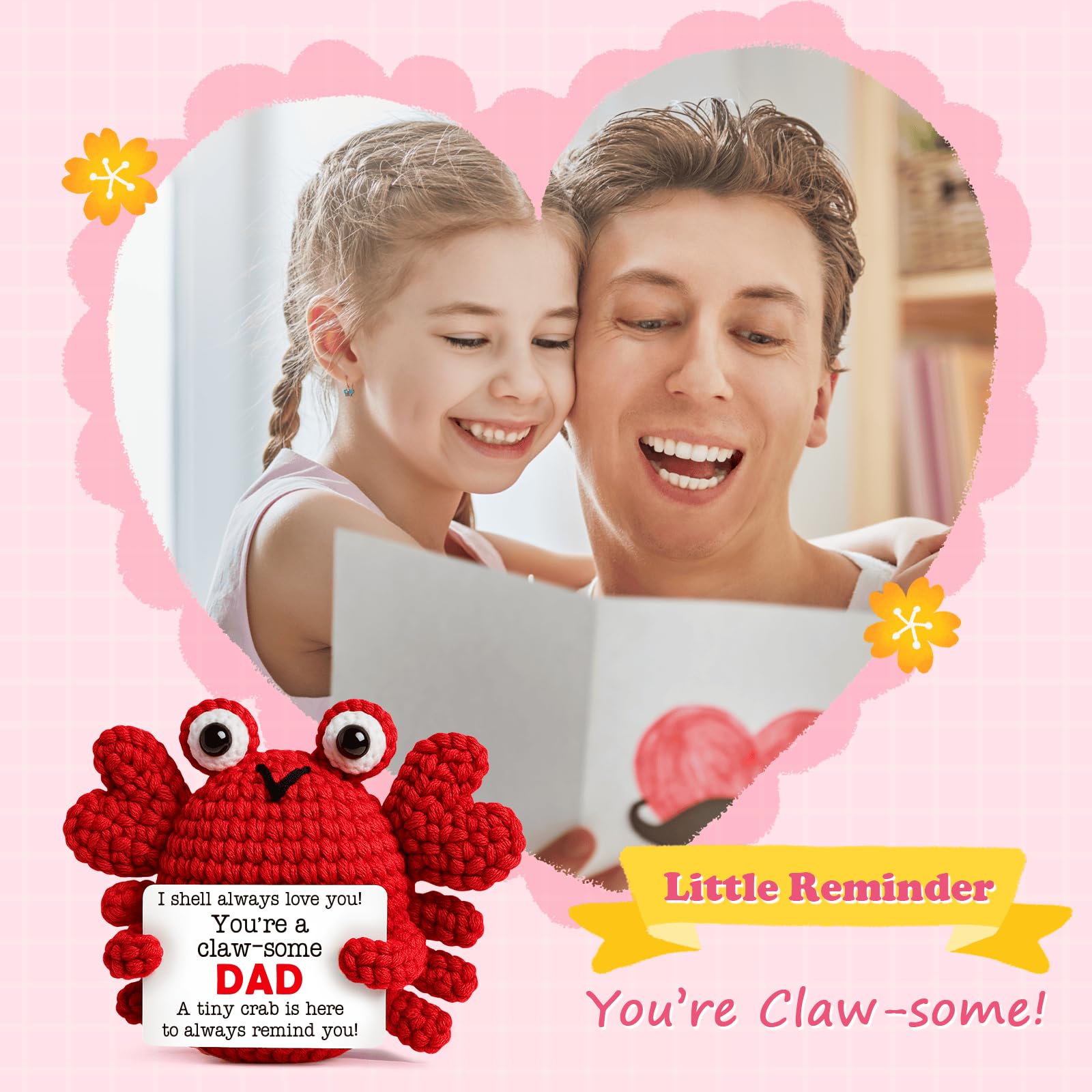 Gifts for Dad Father from Daughter Son Positive Crochet Crab Emotional Crochet Animals Mini Handmade Birthday Gift for Christmas Thanksgiving Halloween