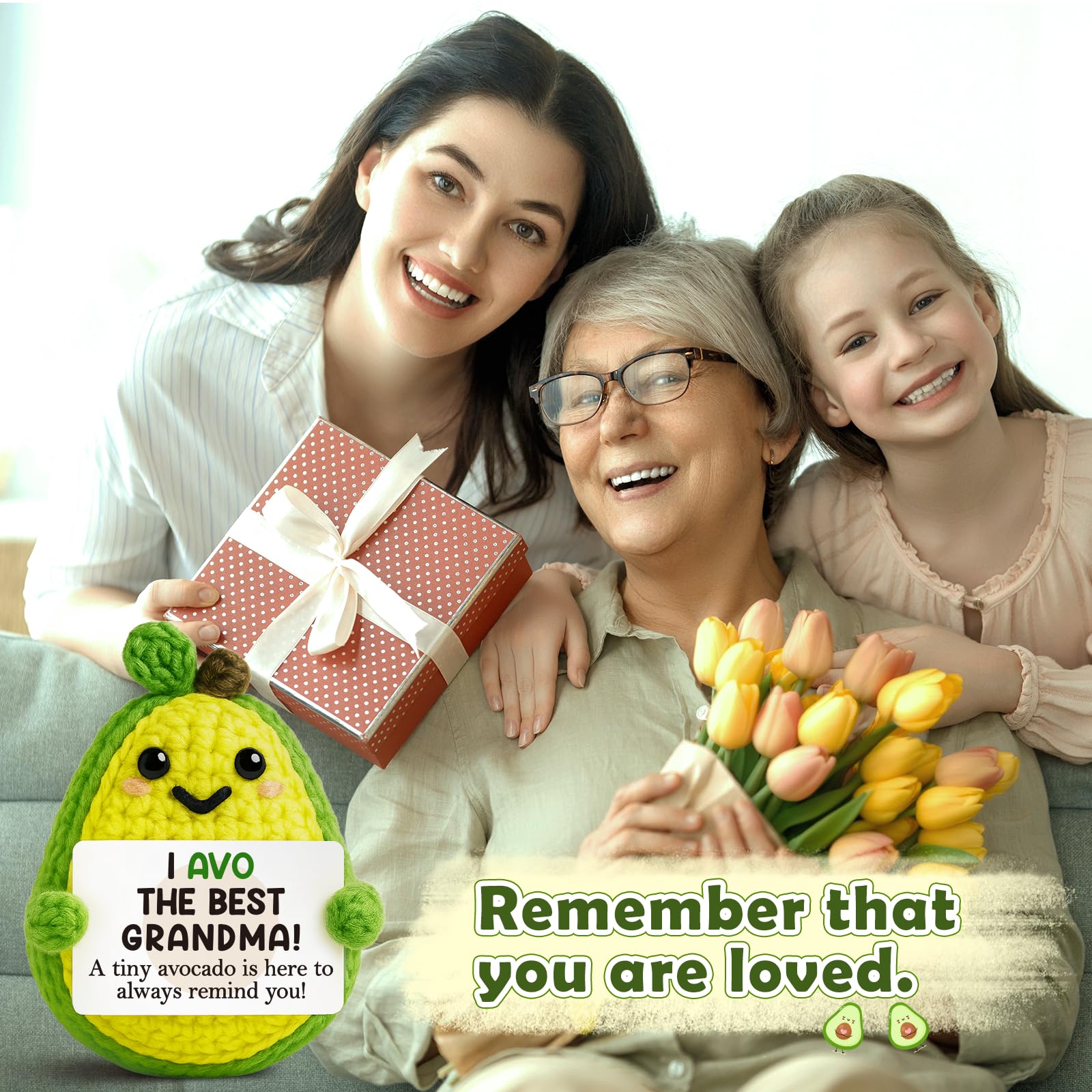 Gifts for Grandma Mothers Day Grandmother Positive Crochet Avocado Emotional Cheer Support Crochet Mini Handmade Grandma Birthday Gifts for Grandmother Nana Gigi Mimi from Granddaughter Grandkids