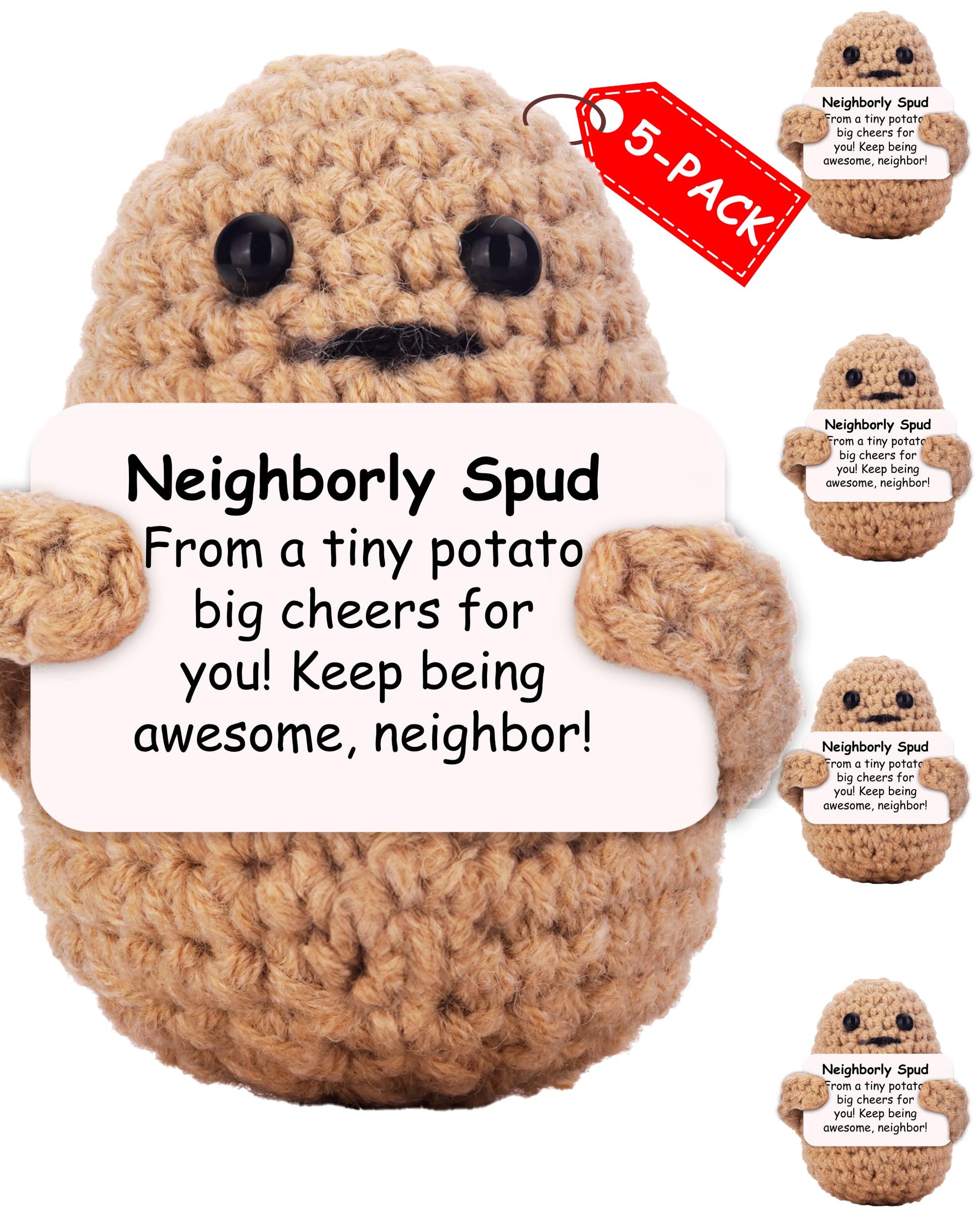 Gifts For Neighbors Bulk (5-Pack) - Bulk Neighbors Gifts - 5 Cute Crochet Positive Potatoes For Neighbor Appreciation | Neighbor