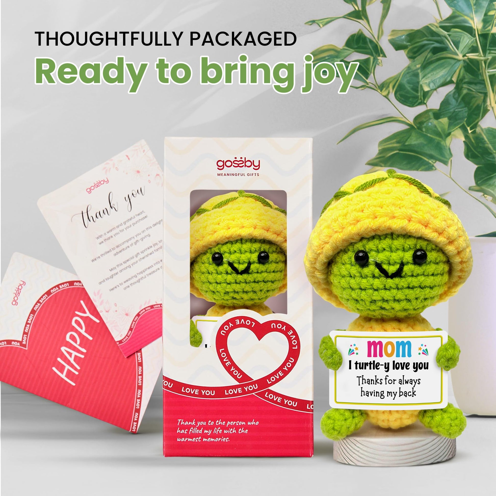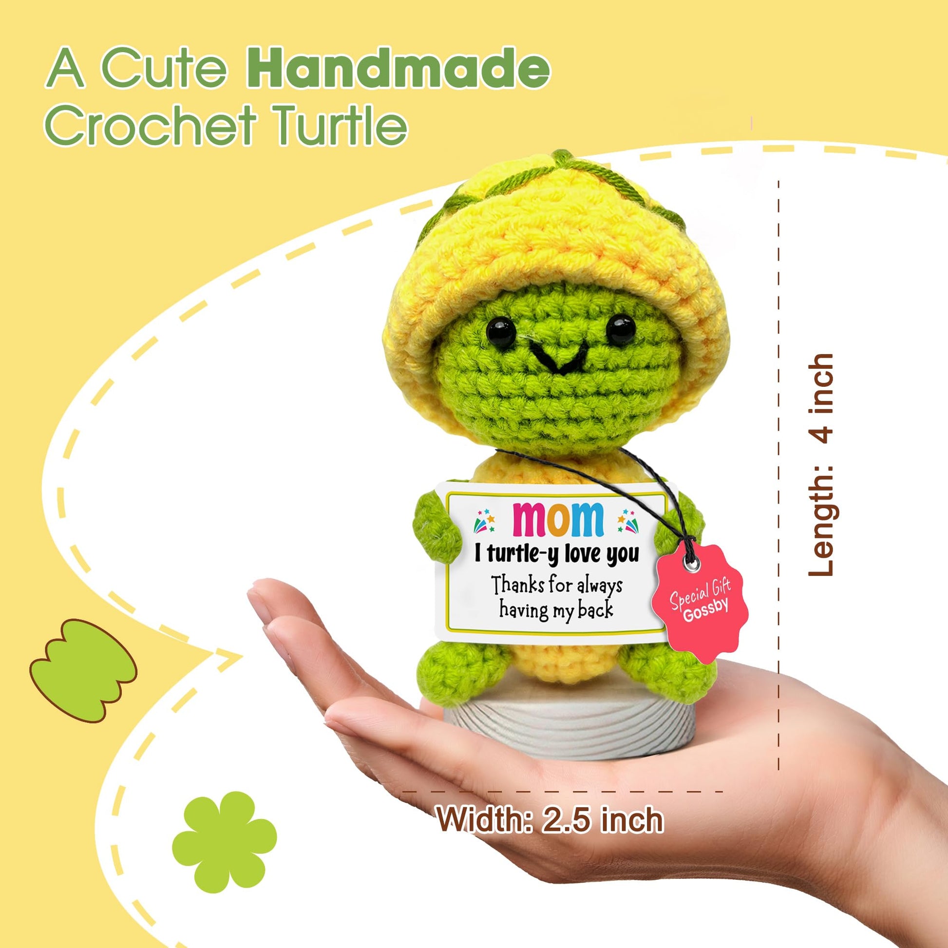 Gossby Gift for Mom - Positive Turtle Crochet with Card - I Turtle-Y Love You - Mom Gift from Daughter Son Kid - Mothers Day Christmas Birthday Present - Handmade Crochet Animal with Message