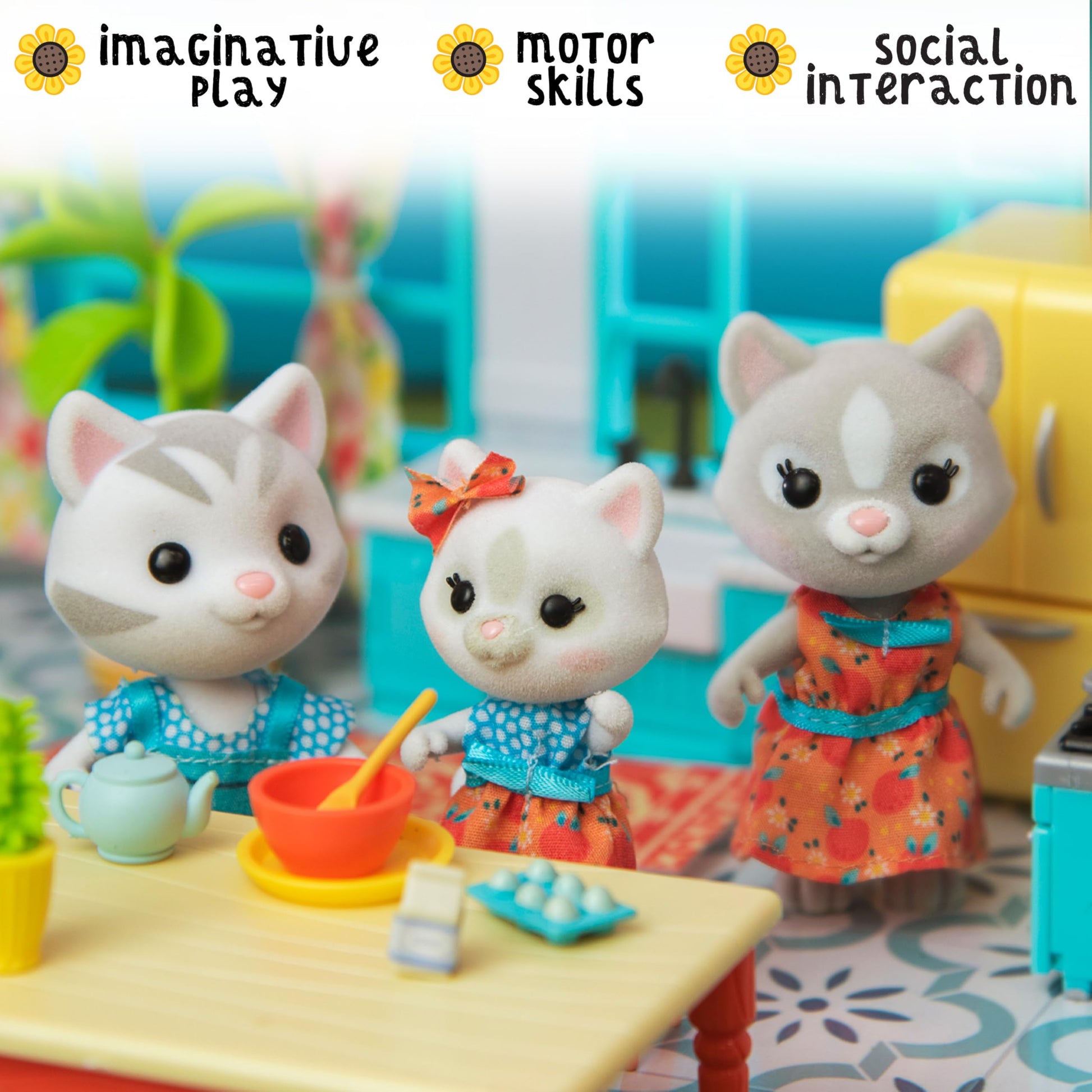 Meet The Purringtons Cat Family, Parents Fritz And Ella, Daughter Zoe, And Baby Rose! Each Posable Flocked Figure Wears A Whimsical Printed Outfit That Is Removable For Fun Fashion Play. This Outdoorsy Family Is Preparing For The Big Event In Rainbow Ridge! It'S The Harvest Festival, And Mom Ella And Her Daughter Zoe Are Looking Forward To Entering Their Prized Pumpkin Pie Into The Baking Contest. Meanwhile, Dad Fritz Is Busy Working On His Farm Truck For The Purr-Fect Hayride With Baby Rose! Join In The Fun And Create More Pretend Adventures Together, And Make Every Day A Special Day!