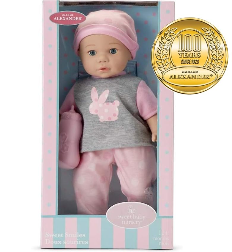 - Q: What age is the Madame Alexander Sweet Smiles doll suitable for? A: The Madame Alexander Sweet Smiles doll is recommended for children aged 12 months and up, making it a perfect first doll for toddlers.