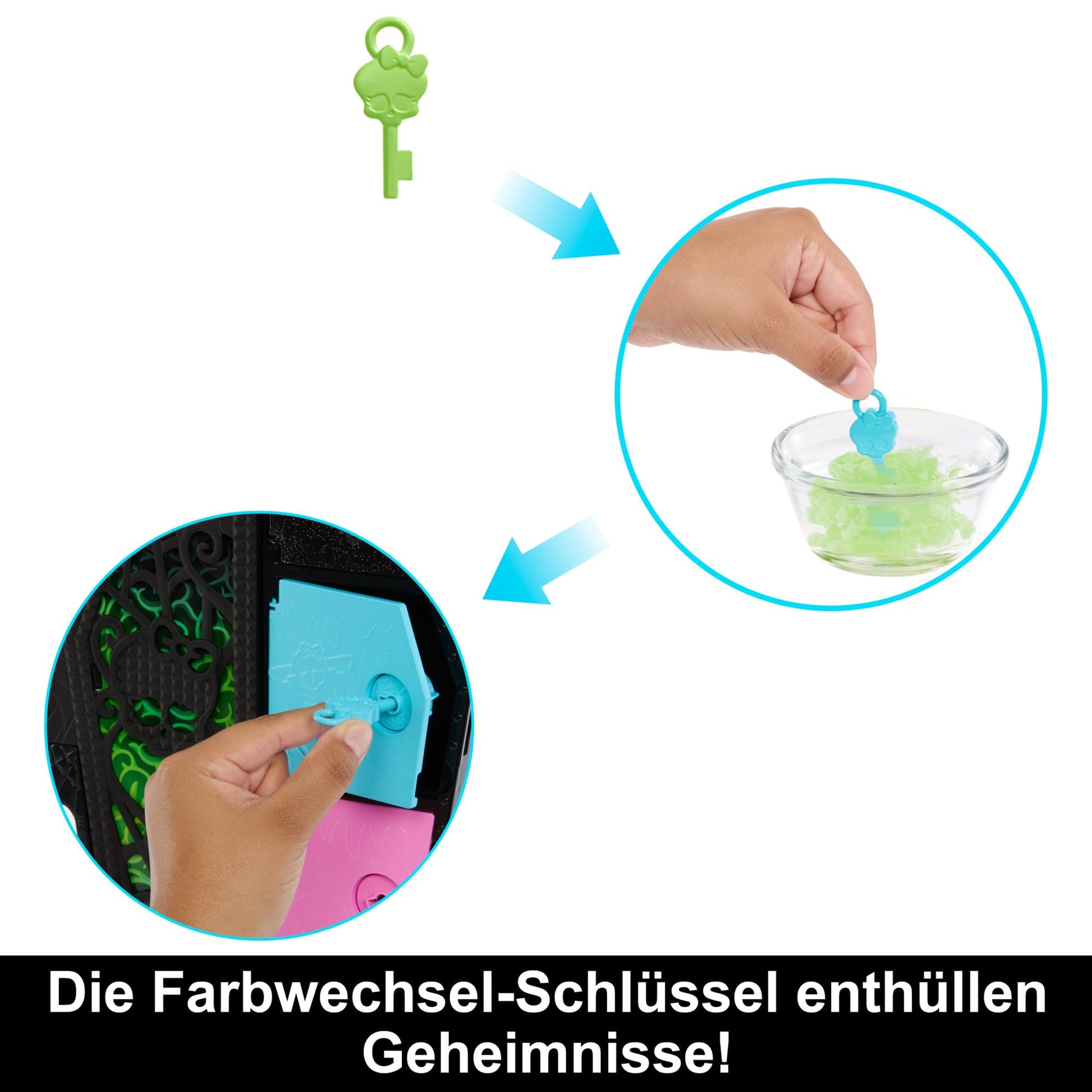 The Monstrous Secrets Box Set Returns In Its Neon Frayers Series And This Time It'S Fluorescent! Each Box In Electric Colors Comes With A Monster High Doll And More Than 19 Surprises, Including Three Glow In The Dark Accessories. Color Reveal Magic Allows For A Step-By-Step Discovery, Both Scary And Dramatic, While The Coffin-Shaped Locker Is Perfect For Imagining Many Stories And Storing Accessories. Items Sold Separately. Some Products May Not Be Marketed. Fully Articulated Doll. Dolls Do Not Stand Alone. Colours And Decorations May Vary.