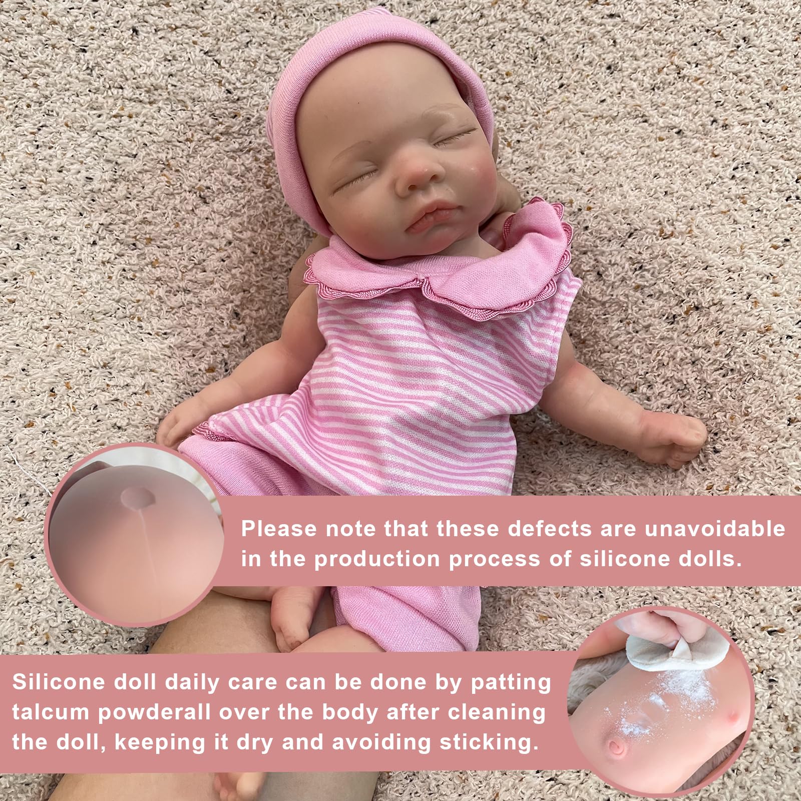 Real Full Silicone Doll: Otard dolls washable Full Platinum Solid Silicone Body weighs about 0.75kg(1.65lb). Around 11 inches from head to toe. Absolutely different with the hollow vinyl baby doll,full silicone makes her look like a real mini baby. Gentle touch, perfect for holding and cuddling. Anatomically Correct and waterproof, can be bathed with your baby. Please take care of silicone baby, don't pull her and be gentle when bath or change clothes for her. | Distinct & Delicate Painting Features: Eyes closed with hand painted eyebrows,can