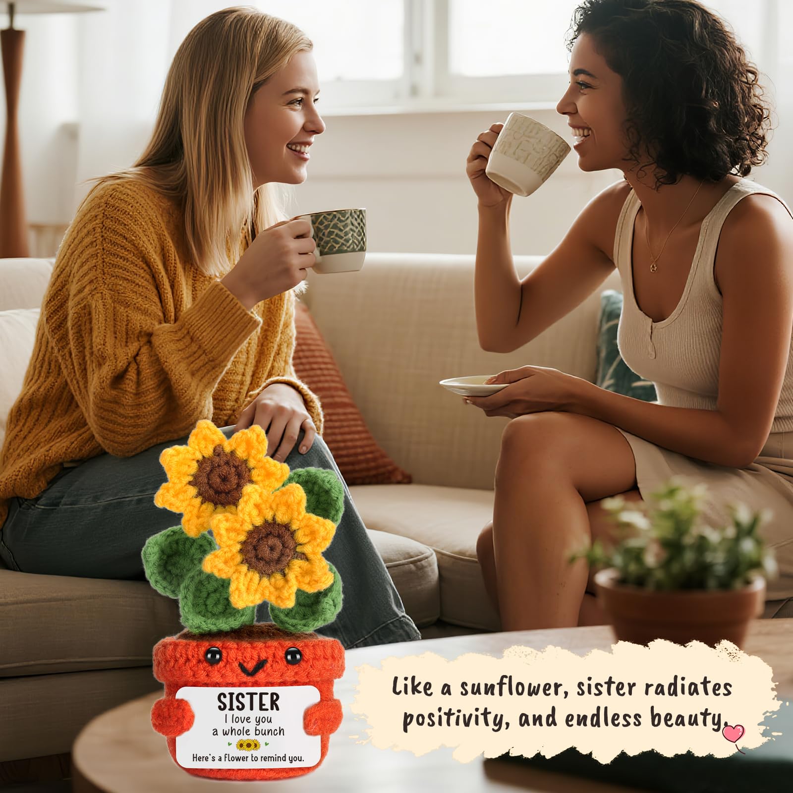 Sister Gifts for Christmas Birthday Big Sister Gift for Women Girls mature-themed Little Older Best Sister in Law Thinking of You Valentines Thanksgiving Christmas Mothers Day Present Cute Handmade Sunflower