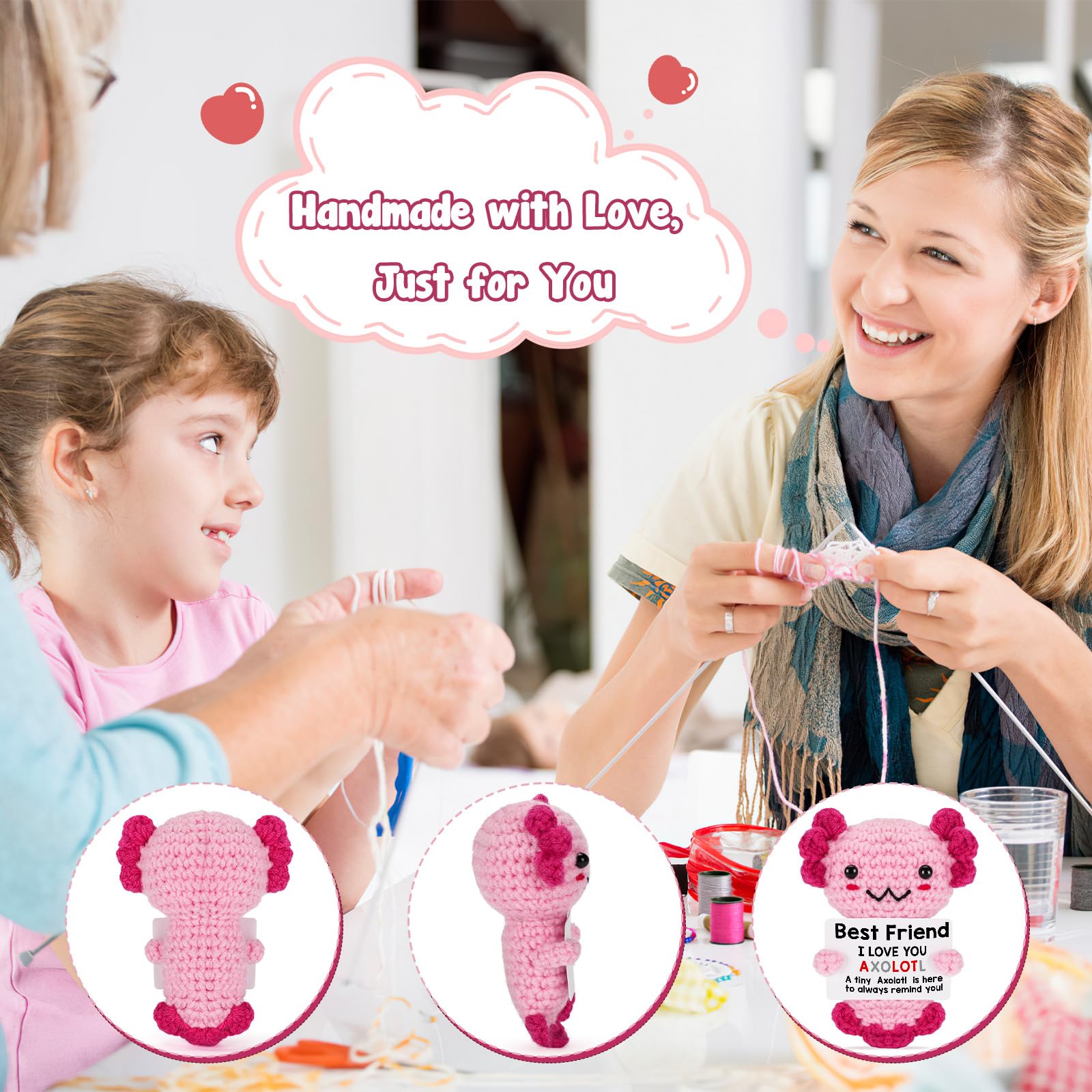 View compareWeming Friendship Gift Crochet Axolotl Tiny Handmade Collectible Doll for Sisters Coworker Work Bestie Funny Present for Birthday Valentines Christmas