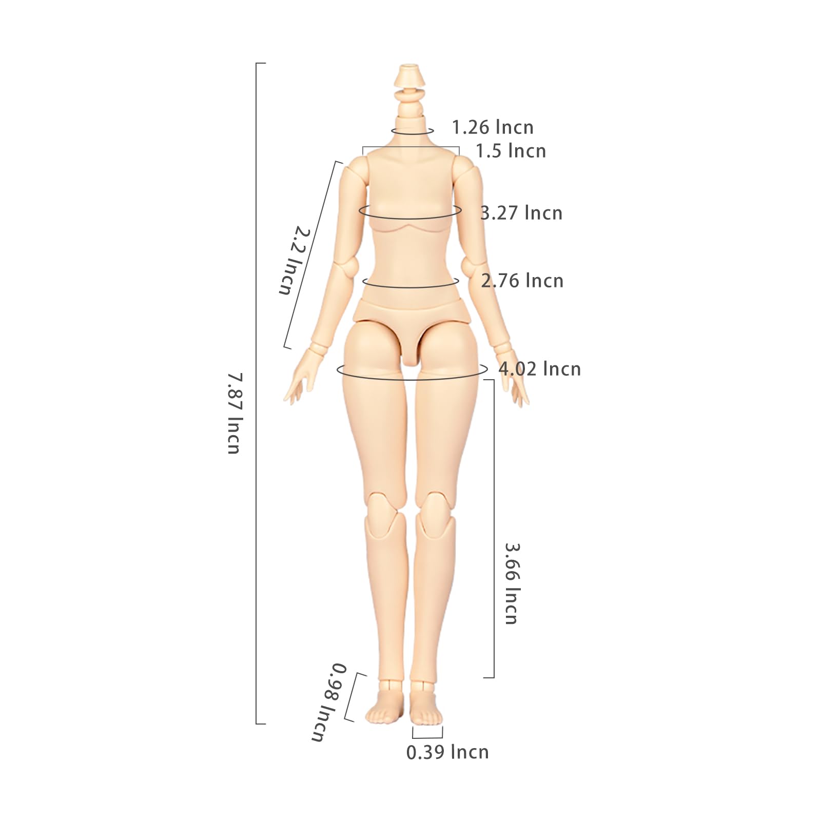 - Q: What is the height of the YMY Female Doll Body? A: The YMY Female Doll Body measures approximately 7.87 inches tall, making it suitable for 1/6 scale BJD doll heads.