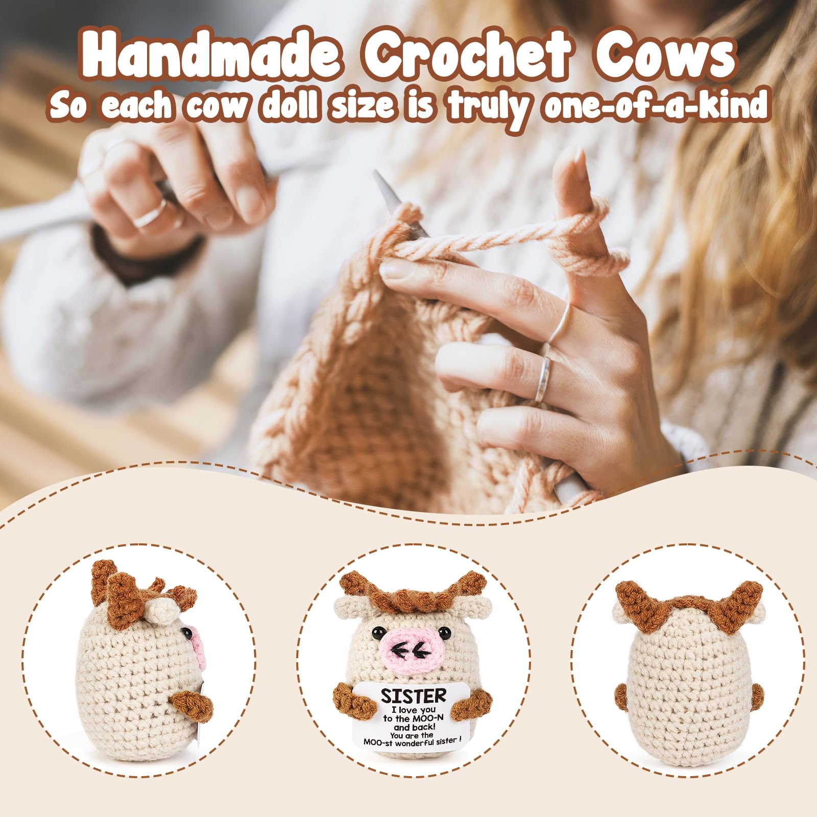 YUEYUQIU Funny Handmade Crochet Cow Gifts for Sister - Sister L Love You to The Moon and Back Cute Small Cow Gifts for mature-themed Sister Big Little Sister from Sister Birthday Christmas Stocking Stuffers