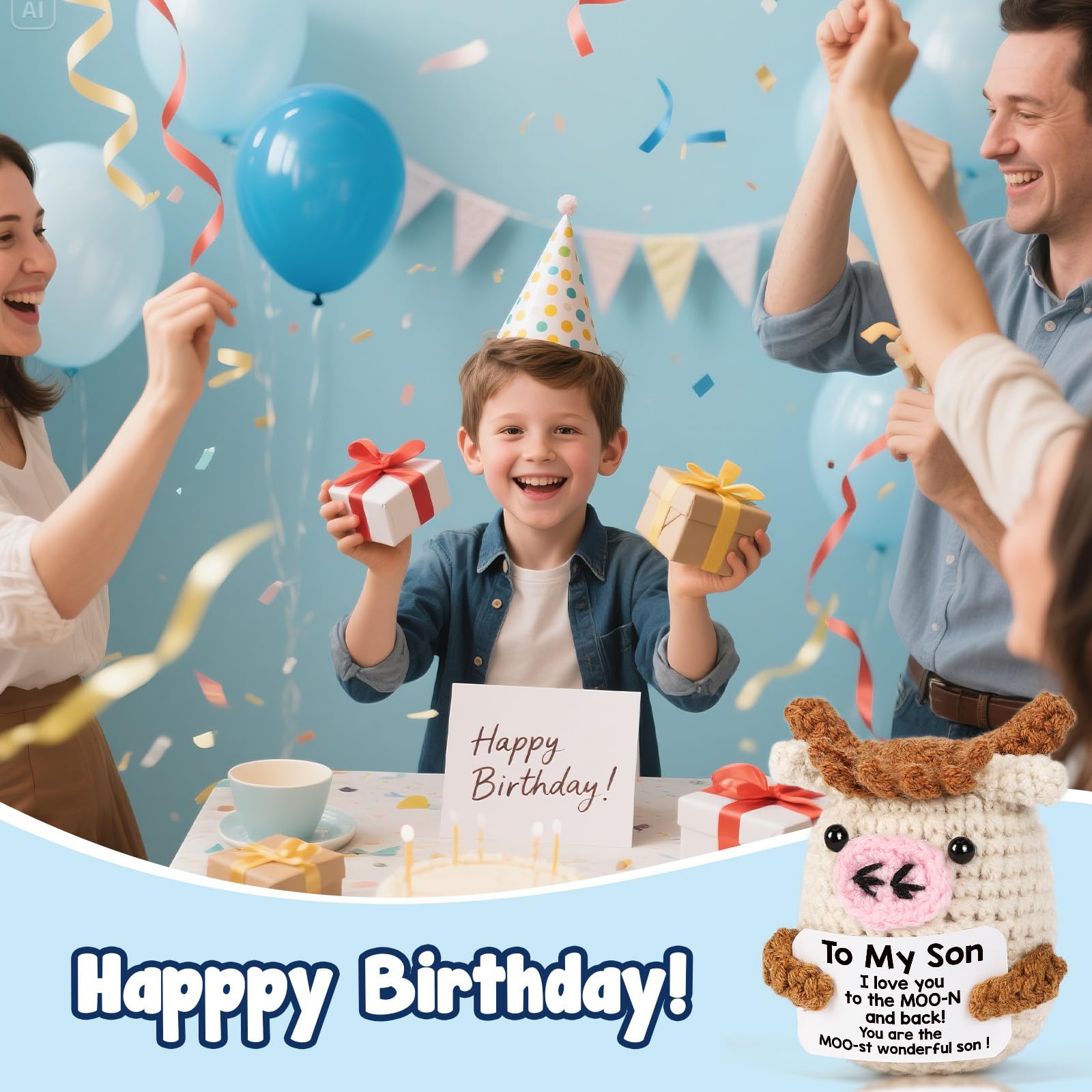 YUEYUQIU Gifts for Son from Mom/Dad - Christmas Birthday Gifts for mature-themed Sons Teens Son in Law Handmade Crochet Small Cow Present for Graduation Birthday Valentines - You are The Most Wonderful Sons