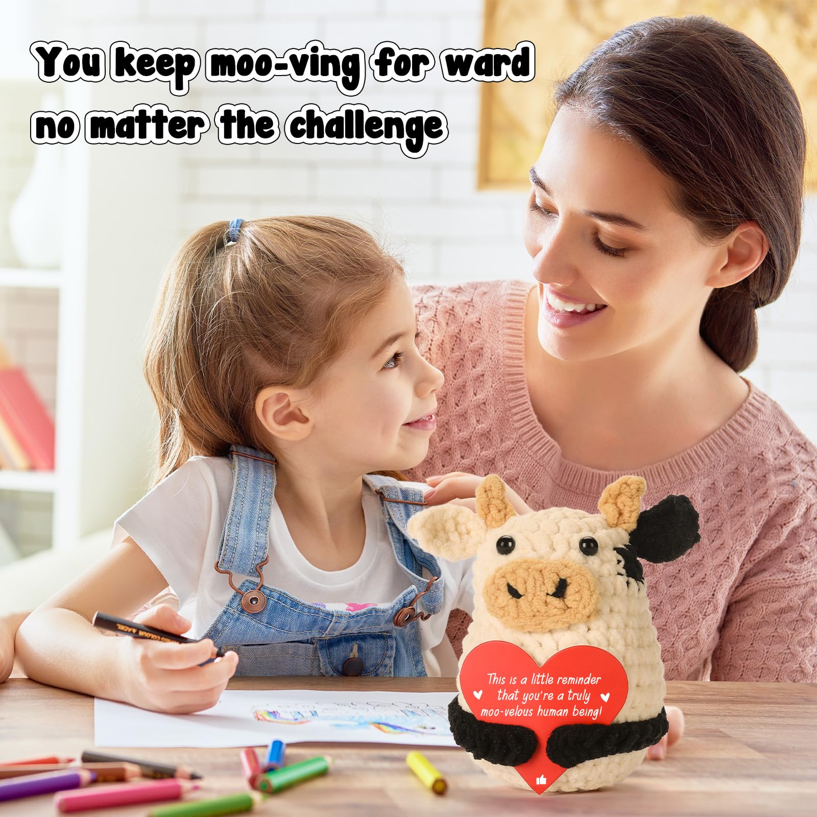 YUEYUQIU Mini Funny Inspirational Positive Cow Gifts - Thank You Appreciation Gift for Women Men Coworker Friends Teens Girl Teacher Mom - Handmade Crochet Small Cow Present for Christmas Birthday
