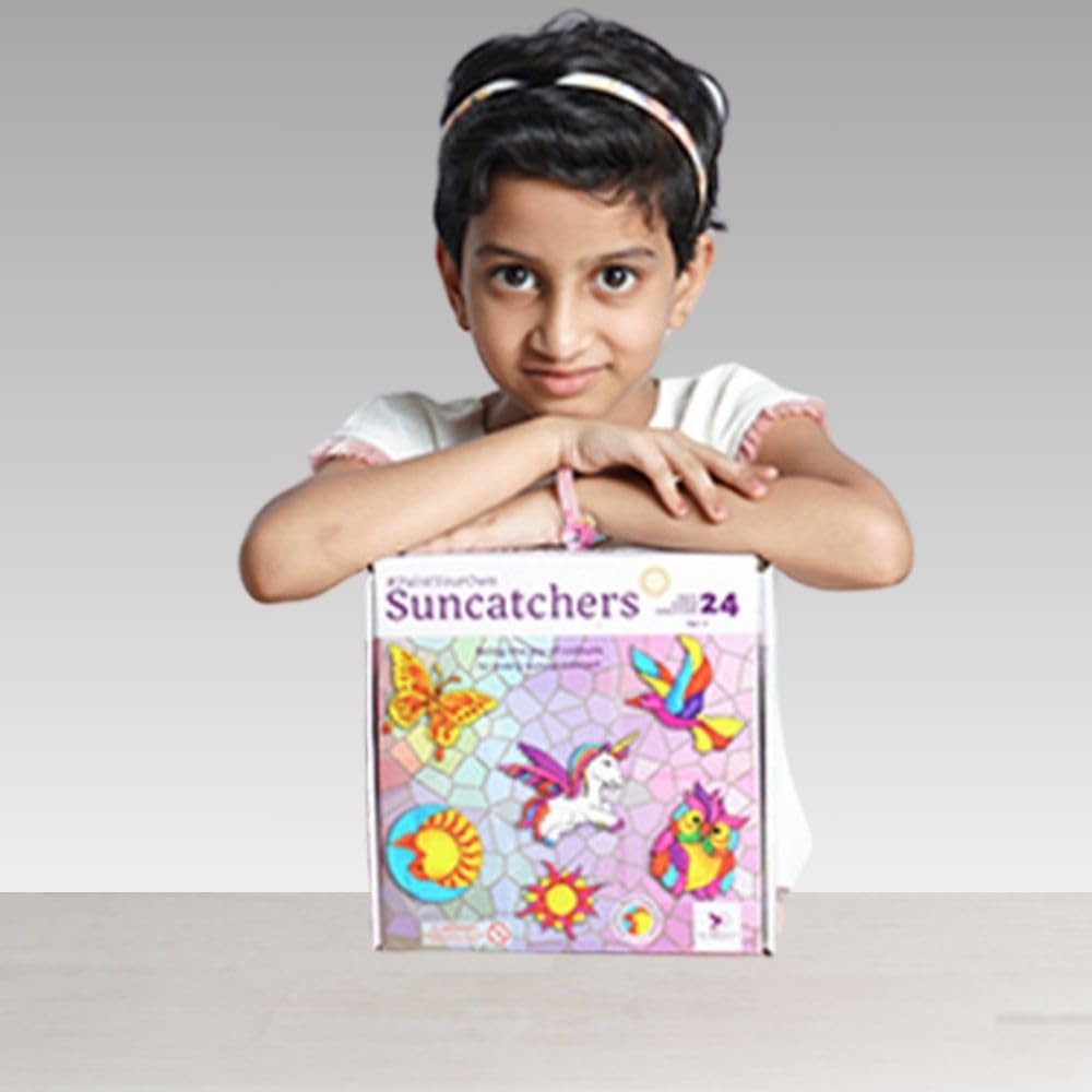 Toykraftt Glass Painting Window Art Suncatchers - Diy Art N Craft Set, Painting Kit For Kids 7 To 12 Years Old, Glass Painted Wi