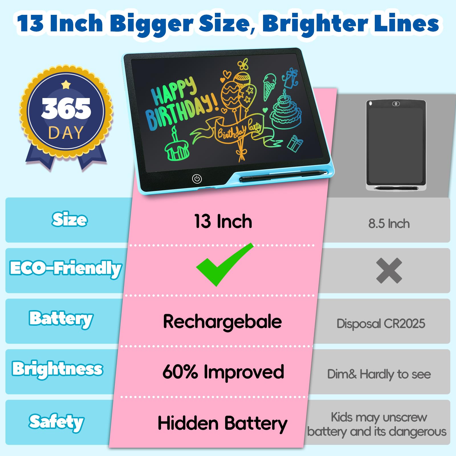 View compare13 Inch Lcd Writing Tablet For Kids, Rechargeable Doodle Board, Kid Drawing Pad Learning Toys Best Gift For Birthday Christmas 3