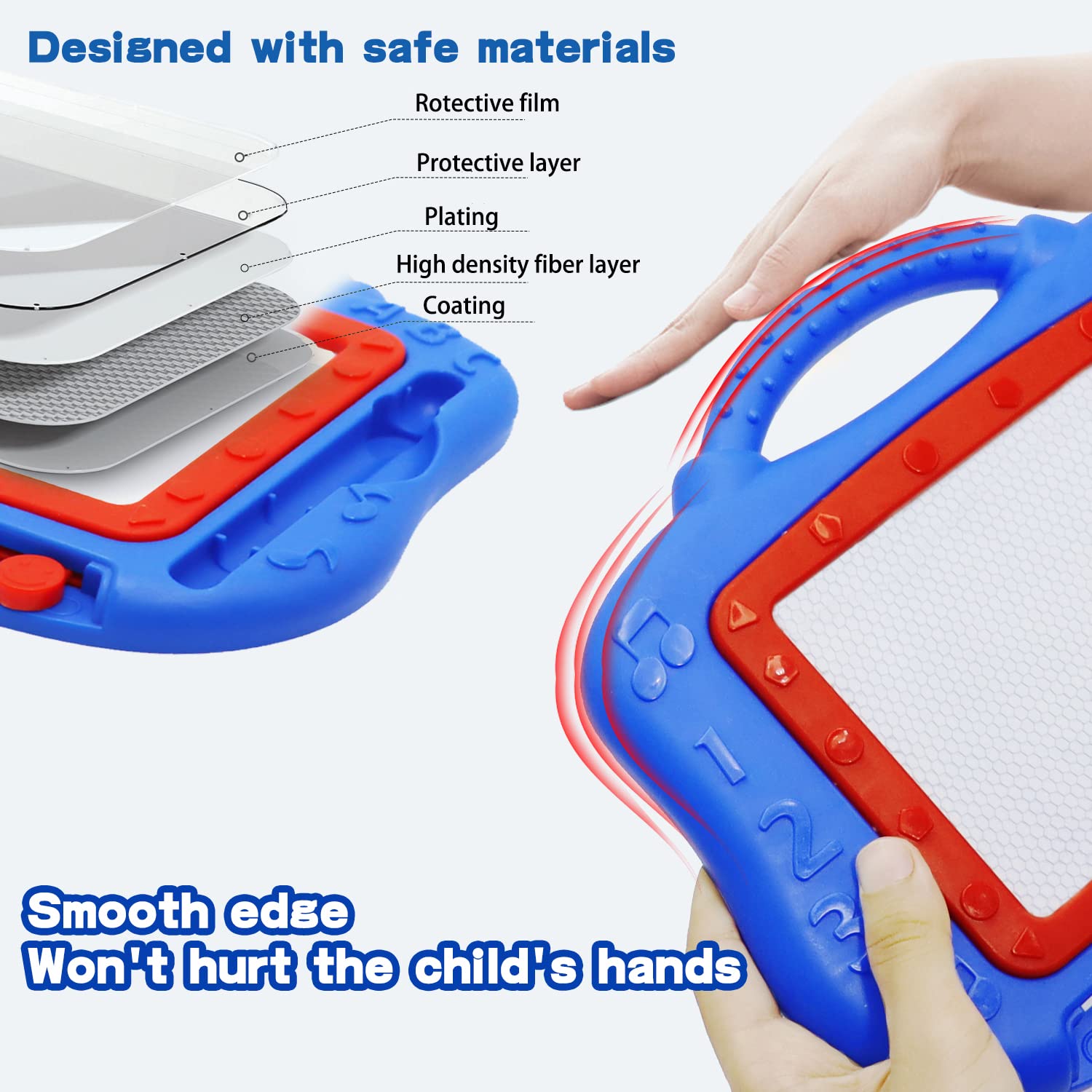 About Products: 6 Pieces mini drawing board is made of ABS plastic material, toddler toys for girls boys, suitable for playing at home and outdoor travelling. The colorful magnetic drawing board for toddlers suitable for kids playing,magna for toddlers doodle create toddlers motor skills,toddler sketch for age 3 4 5 6. Preventing dirty crayons, chalk powder and kid wont draw on walls again,offer a fun and clean game environment. Painting and writing activities, exploring childs creativity, toys gifts for christmas stocking stuffers,birthday parties, easter gatherings, party favor, everyday play. If the drawing board does not satisfy your needs, please e-mail to us directly for help, we will offer you satisfactory customer service. Specifications: Material: ABS plastic Size: approx. 7.4 9 inch Color: Purple and blue Package includes: 6 x Magnetic drawing boards 6 x Magnet pens
