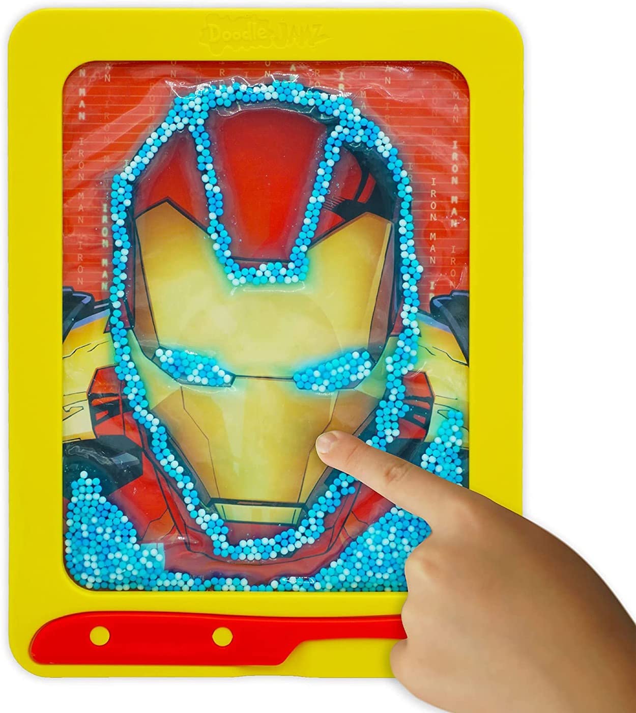 Doodlejamz Marvel Jellypics - Sensory Drawing Pads Filled With Non-Toxic Squishy Beads And Gel – Includes Stylus, Removable 2-Sided Emoji Backer Card (Iron Man, Series 1)