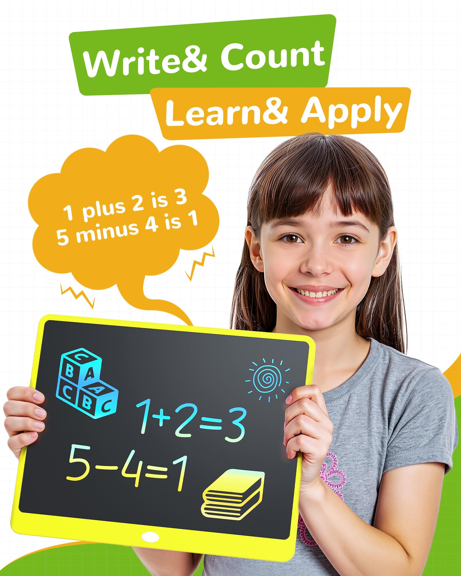 16 Inch Colorful Toddler Doodle Board Drawing Tablet(yellow)