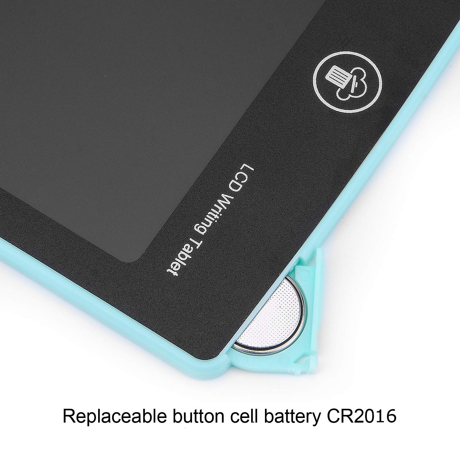 Recommended Age Grading: 2 yrs+ Color | Cyan 8.5 Inch Top educational tablet for kids and children,easy writing with included plastic stylus, one key to clear writing contents. Tablets pressure-sensitive Liquid Crystal Display, creates lines of different thickness based on how hard you pushReplaceable coin-cell button battery: Built in button battery, support writing and erasing more than 100,000 times,when remove button without function, it is easily to be replaced with a new CR2016 battery. Portable and durable: The case and LCD are made from durable plastic materials, Thin, ultra-light weight, it is 1/8 inch thin and is easy to take with you. Multi-Purpose: 1. Suitable for children and kids graffiti, Arithmetic, Drawing and Pictures. 2.A good helper to leave messages to your families, lovers, to take note of Shopping lists, To-do, Recipe and other, and you can stand it on the desk with kick-stand function, or hang it on the wall. 3. Or to make some notes, memos at office for your daily work, and leave messages co-worker. Specification: Material: Duarable ABS + Liquid LCD Screen: 8.5 inch Size: 8.93*5.75*0.2 inch Weight: 0.24 lbs Battery: CR2016 coin-cell button battery Package Contents: 1X 8.5 LCD Writing Tablet (Blue) 1X Writing Stylus WARNING: 1.Do not use this product in humid condition. 2.Do not allow this product to get wet. 3.Do not use liquid or aerosol cleaners. 4.Please use the pen which included in the product to write, do not use other kinds of pens or other sharp objects. 5.In case of products damaged or liguid leaked, please place the product in a sealed bag and put it in the non-recyclable trash can, please wash your hands thoroughly if leaked liquid touched by the skin, and if situation is serious, go to the hospital for better treatment immediately. 6.Writing tablet cant connect to computer and cant save images.