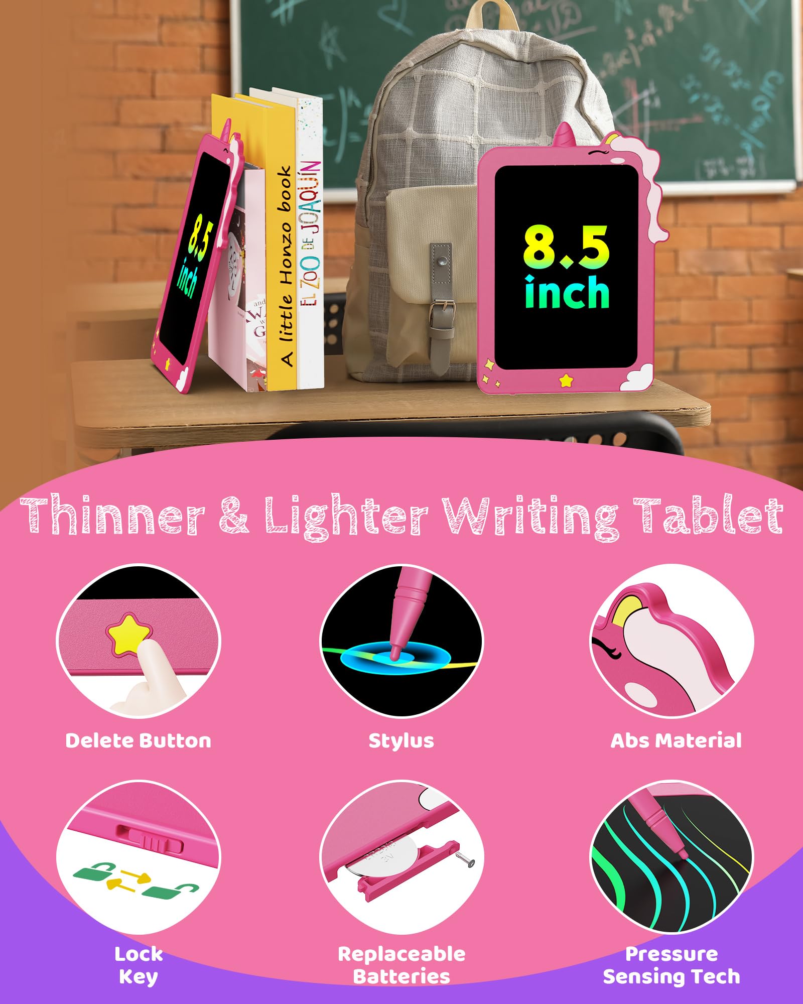 TEKFUN LCD Writing Tablet for Kids, 8.5 Inch Unicorn Toddler Doodle Board, Drawing Tablet, Reusable Electronic Pads Educational