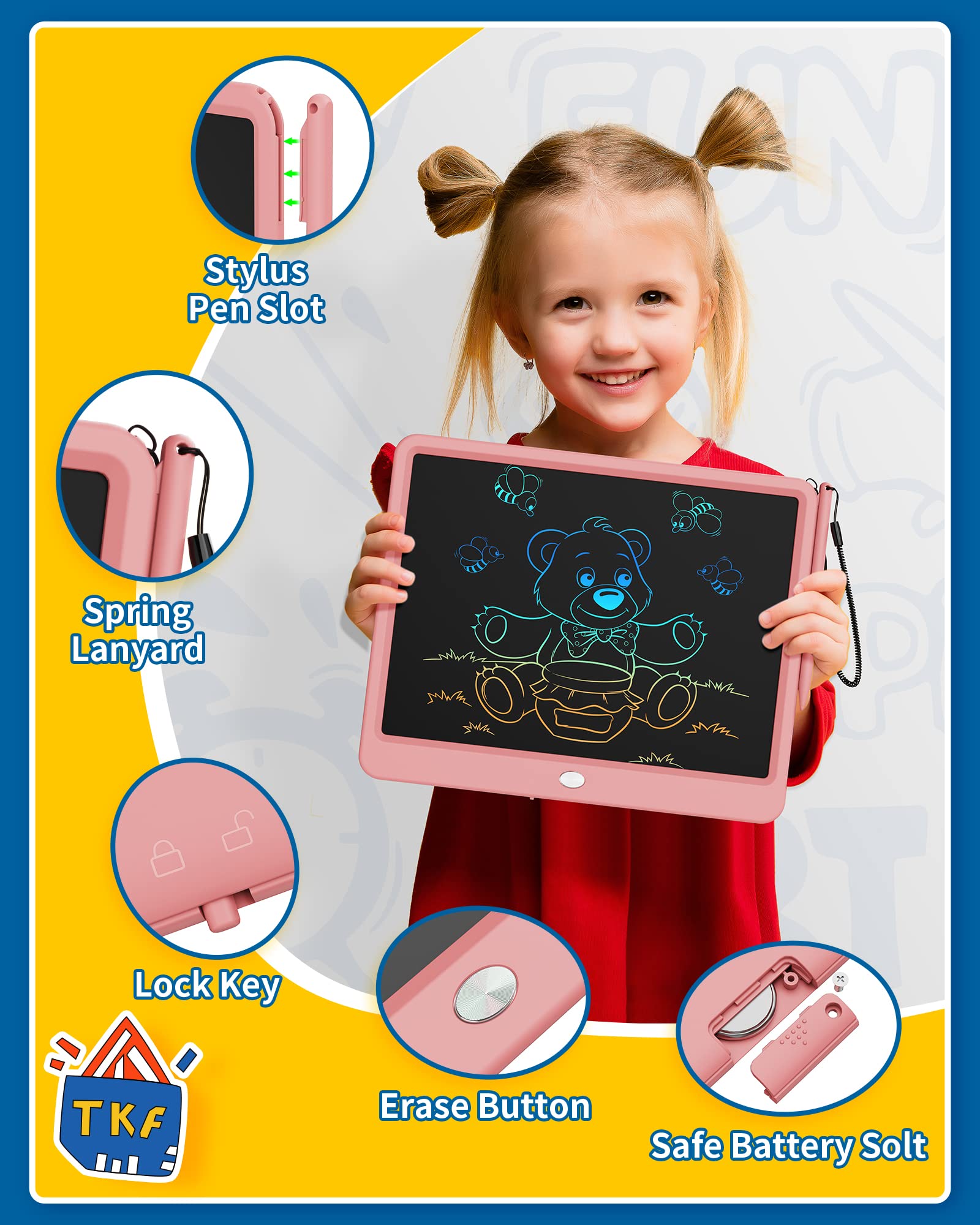 TEKFUN Toys for Girls 12in LCD Writing Tablet, Erasable Doodle Board with Anti-Lost Stylus, Mess Free Coloring Drawing Board, Tr