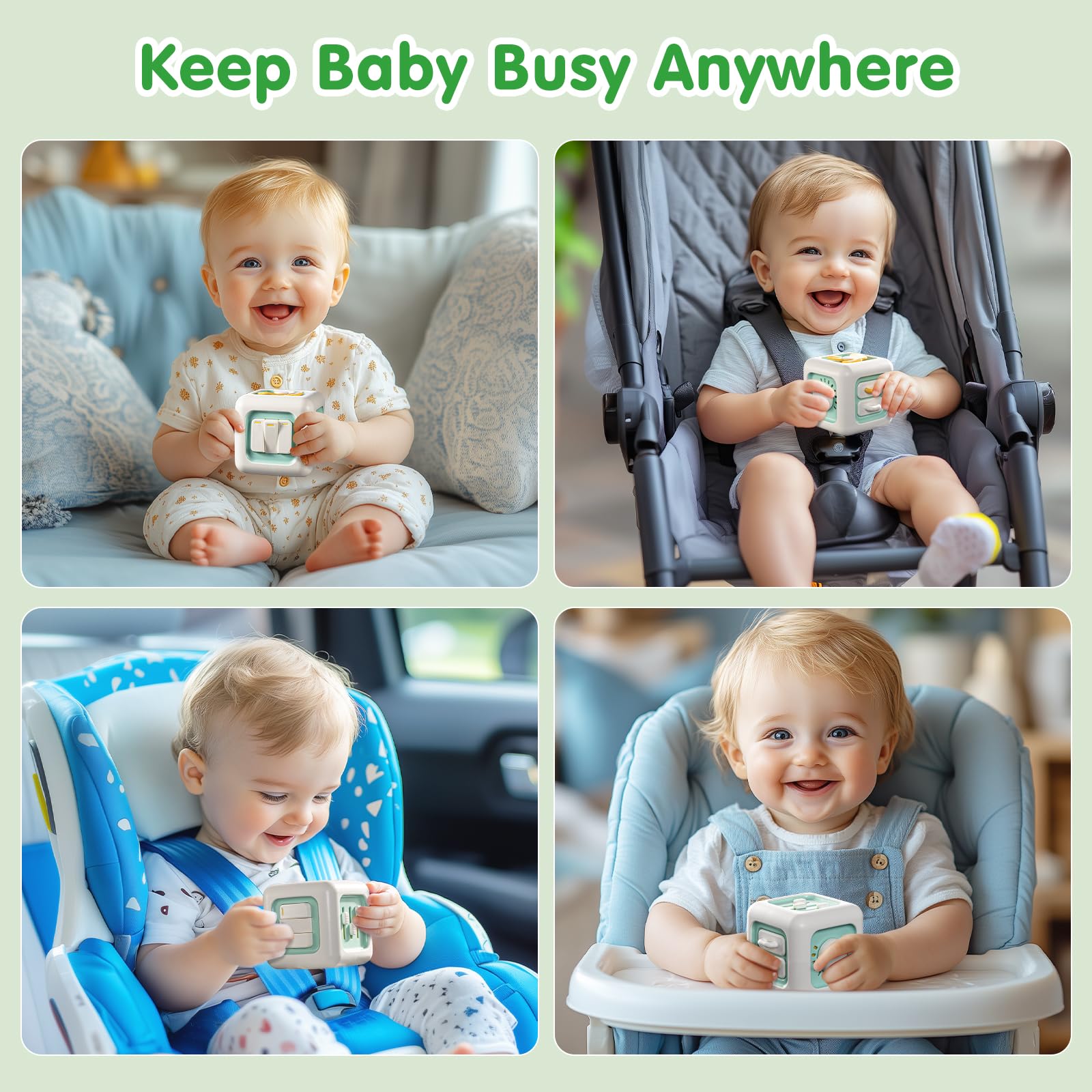 Activity Cube Montessori Toys for 1 Year Old, Sensory Toys Busy Board for Babies 6-12 Months, Car Travel Airplane Toys for Toddl
