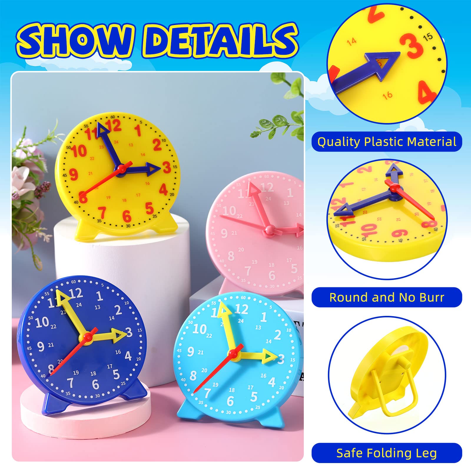 Batiyeer 24 Pcs Teaching Clock Kit for Kids to Tell Time Teaching Mini Geared Clock for Kids Basic Math Development Teacher and