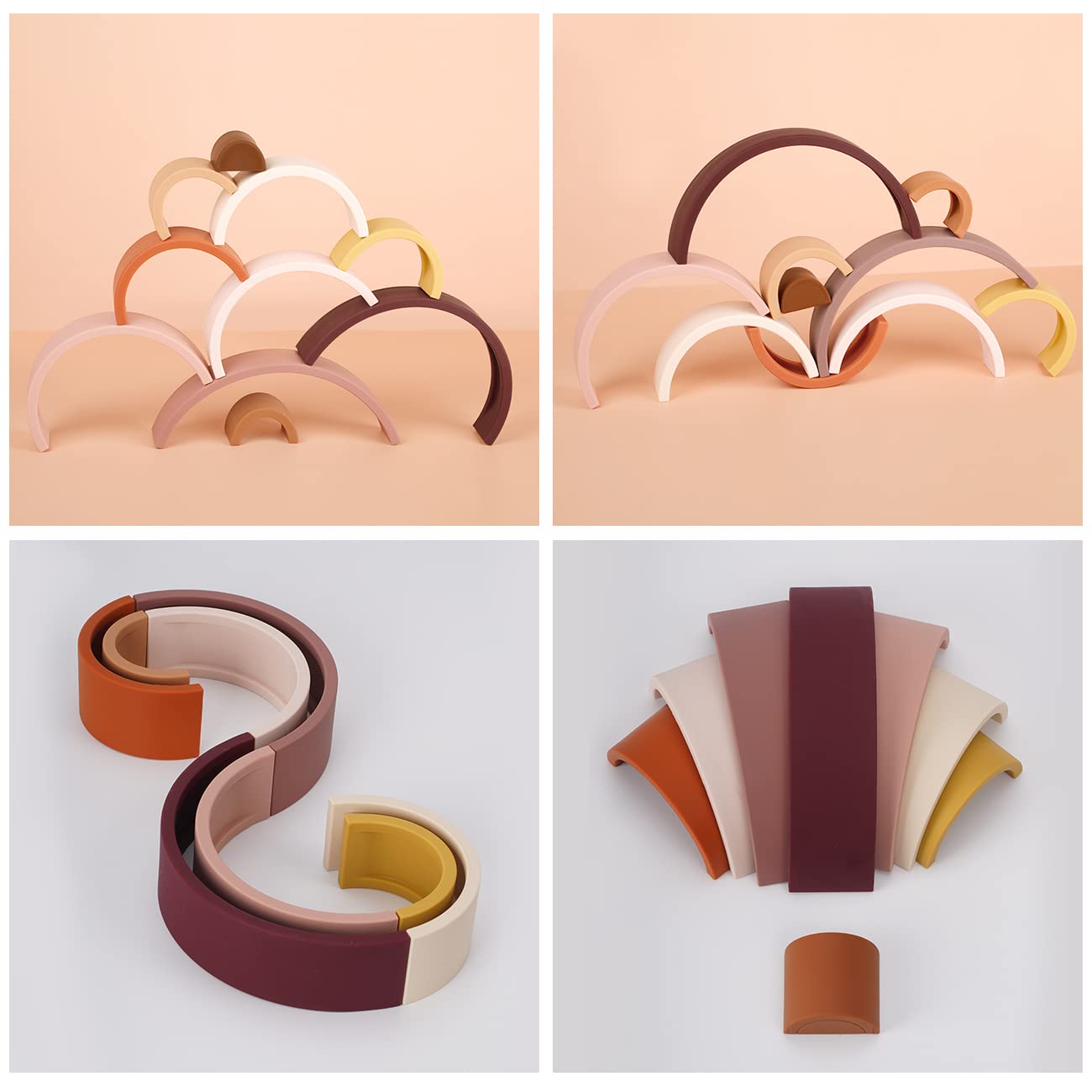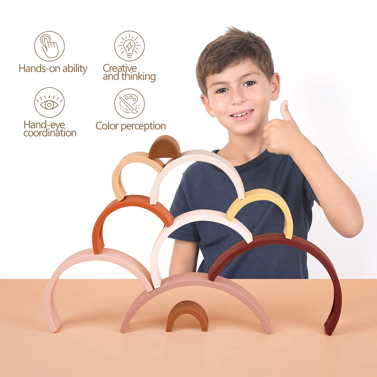 Silicone Stacking Rainbow, Silicone Baby Stacking Toys, Preschool Toys Boho Baby Toys, Stacking Toy & Teething Toys, 10 Pacs Montessori Toys Baby Toys, Rainbow Stacker