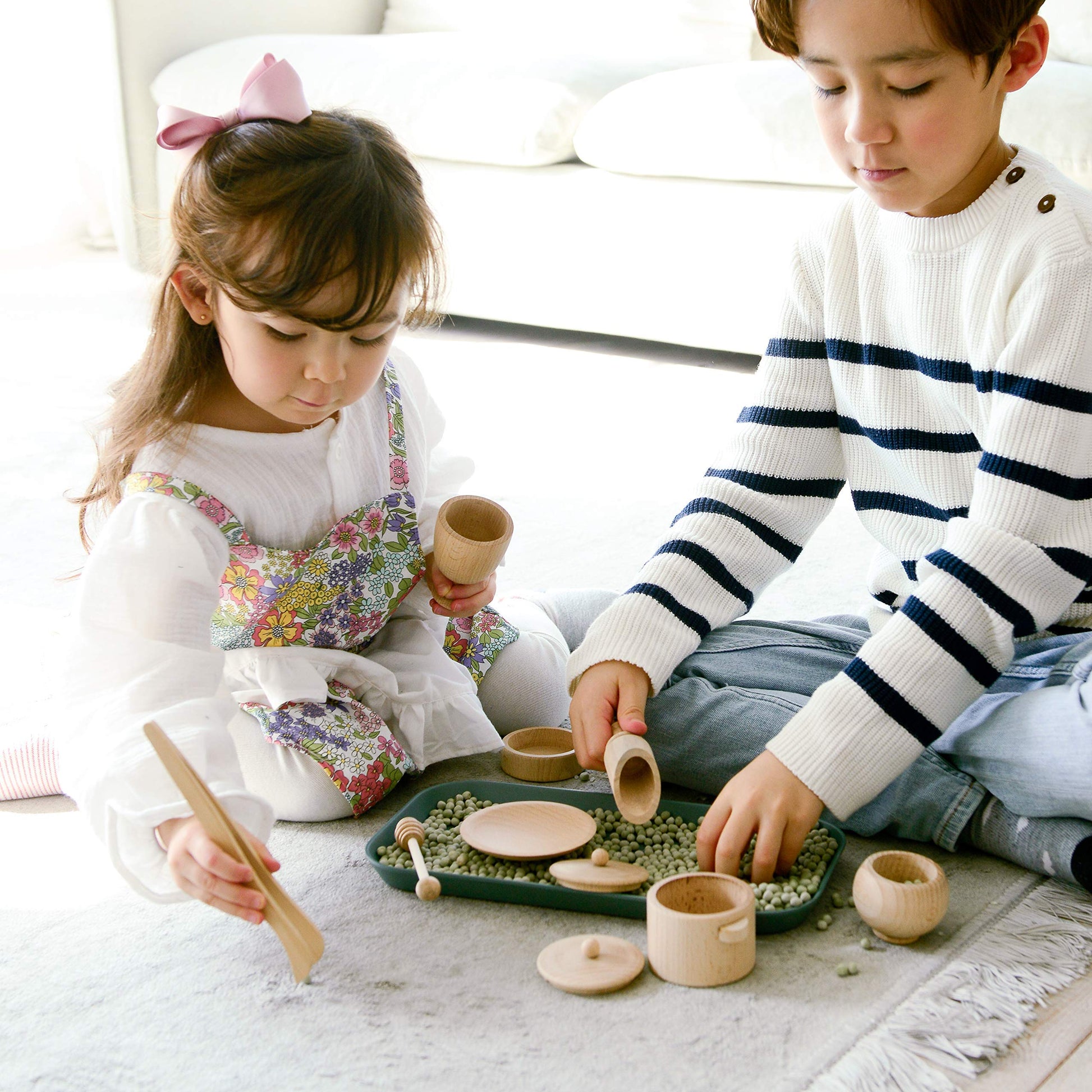 - Q: What materials are the toddler kitchen tools made from? A: This learning set is crafted from natural Danish beechwood and bamboo. Each tool has been hand-sanded for a smooth finish, ensuring safety and durability for young children.