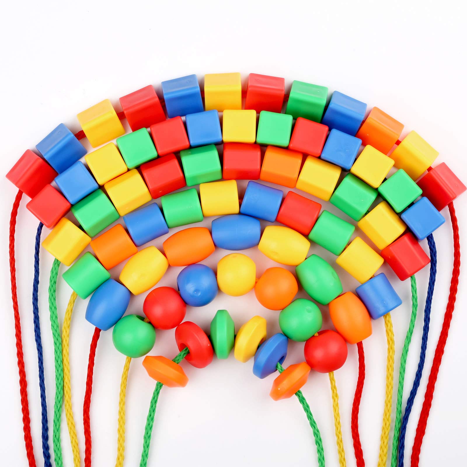 - Q: How many pieces come in the BMTOYS Lacing Beads set? A: The set includes 70 colorful lacing beads in various shapes and sizes, along with 4 colored stringing laces, providing numerous options for creative play and learning activities.