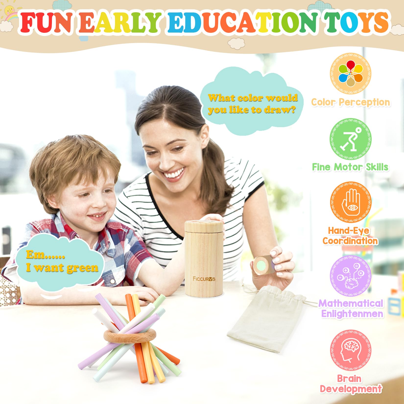 - Q: What age group is the FICCURYS Montessori toy suitable for? A: The FICCURYS Montessori toy is designed for toddlers aged 1 to 3 years, making it perfect for early childhood development.