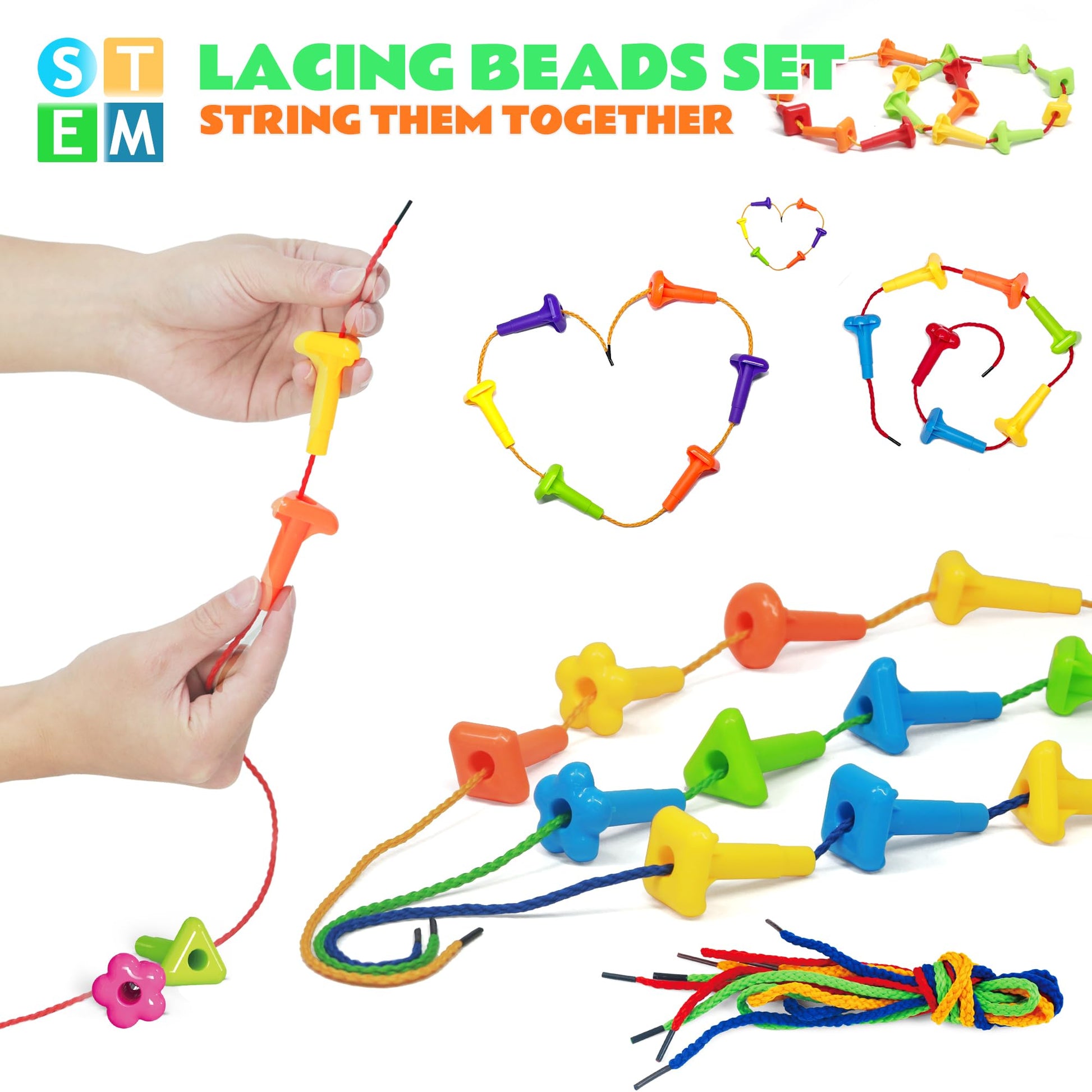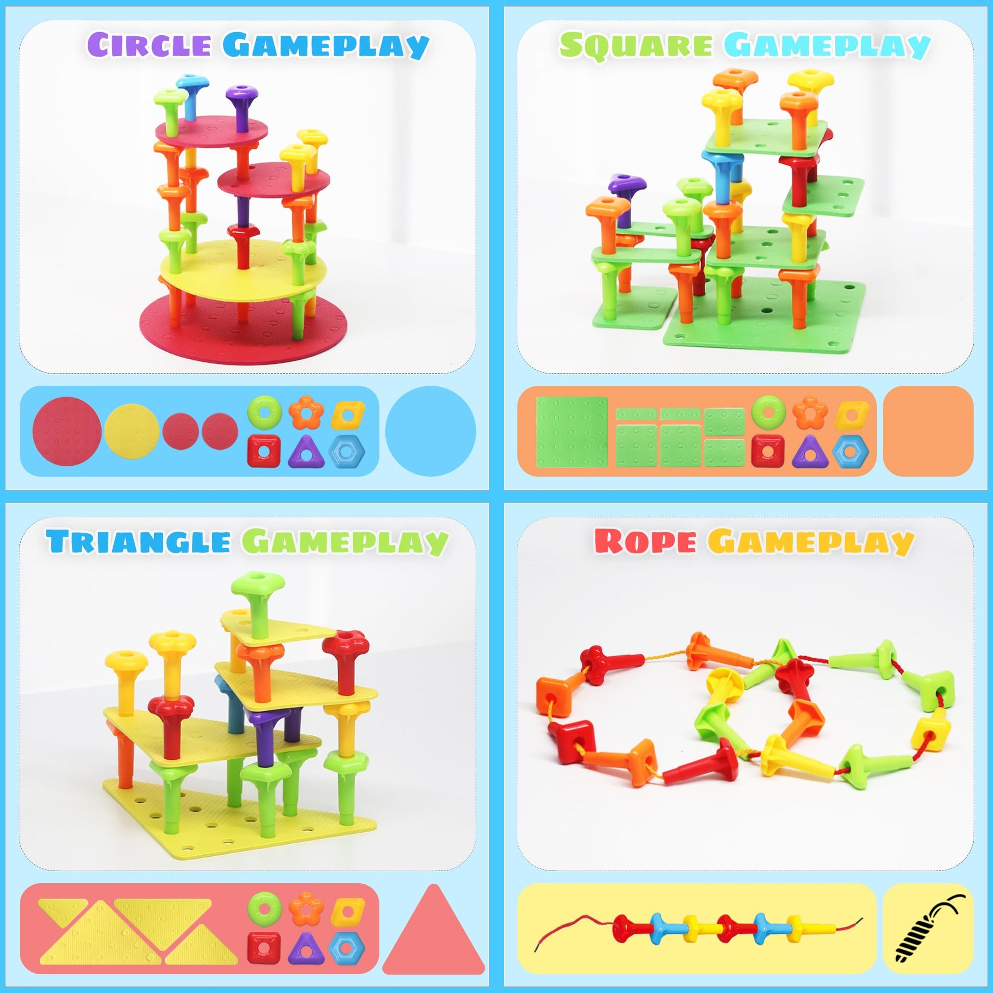 View compareGgiibro Peg Board Set STEM Toys for Toddlers Ages 3-6 | Montessori Sensory Stacking & Lacing Kit with Thick/Thin Foam Boards & S