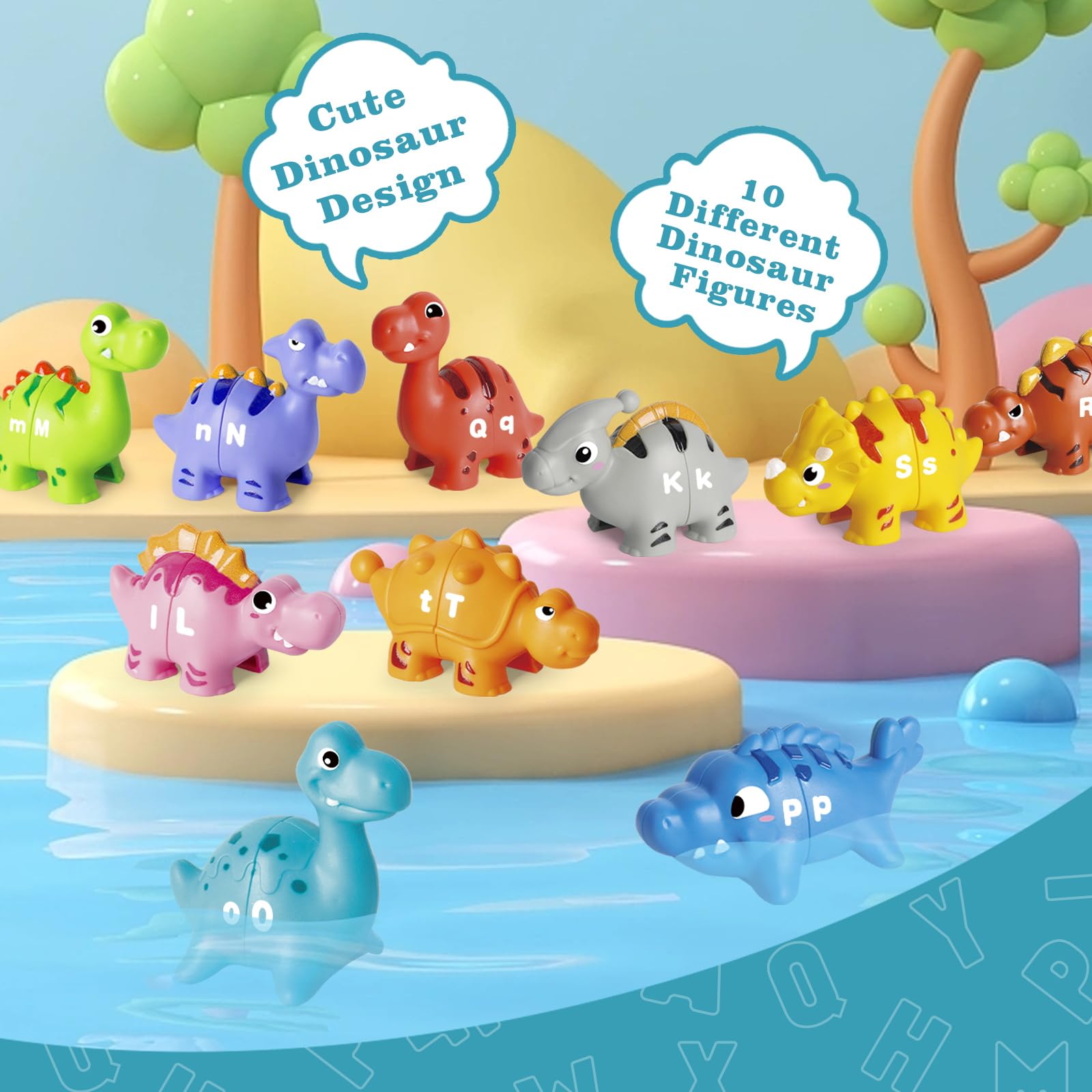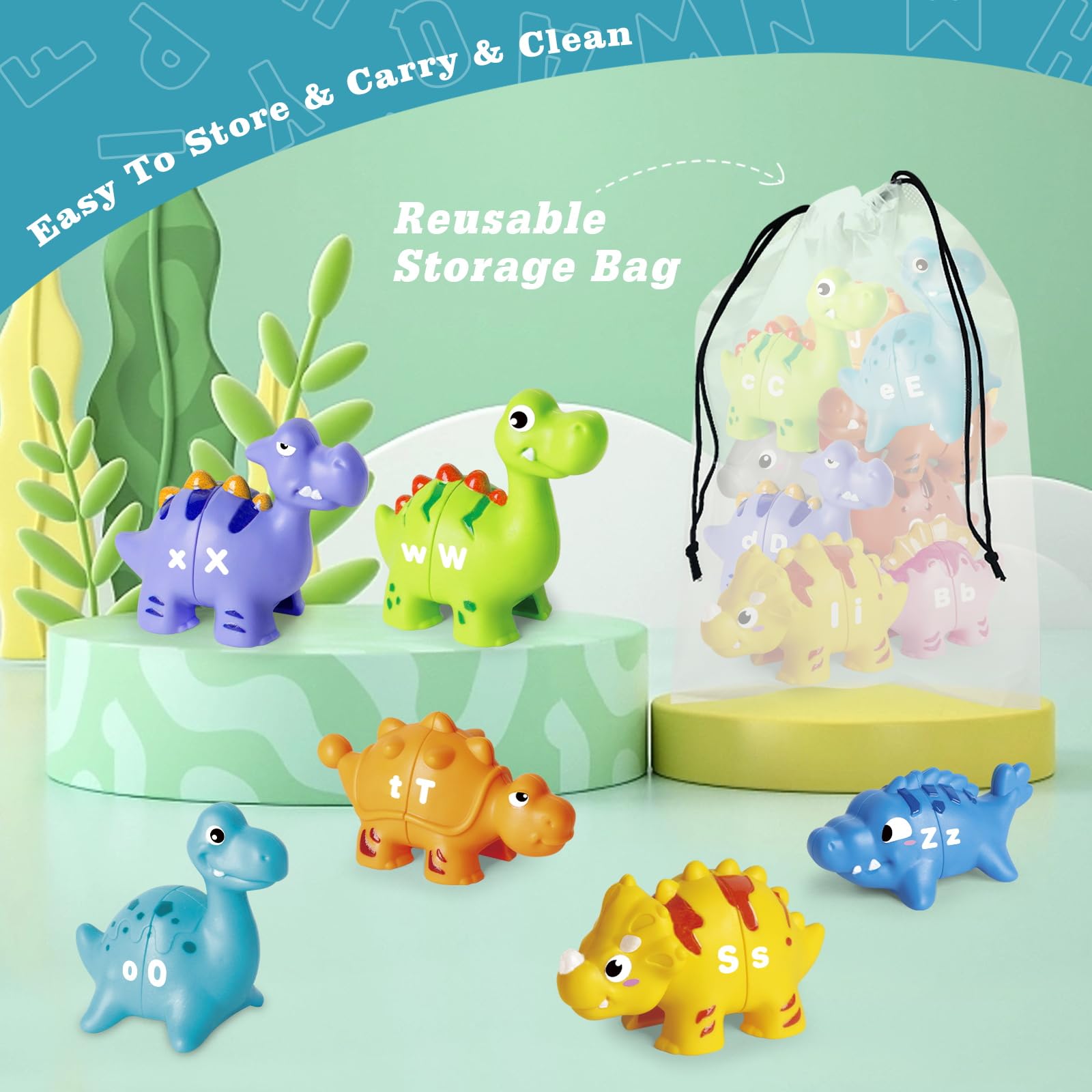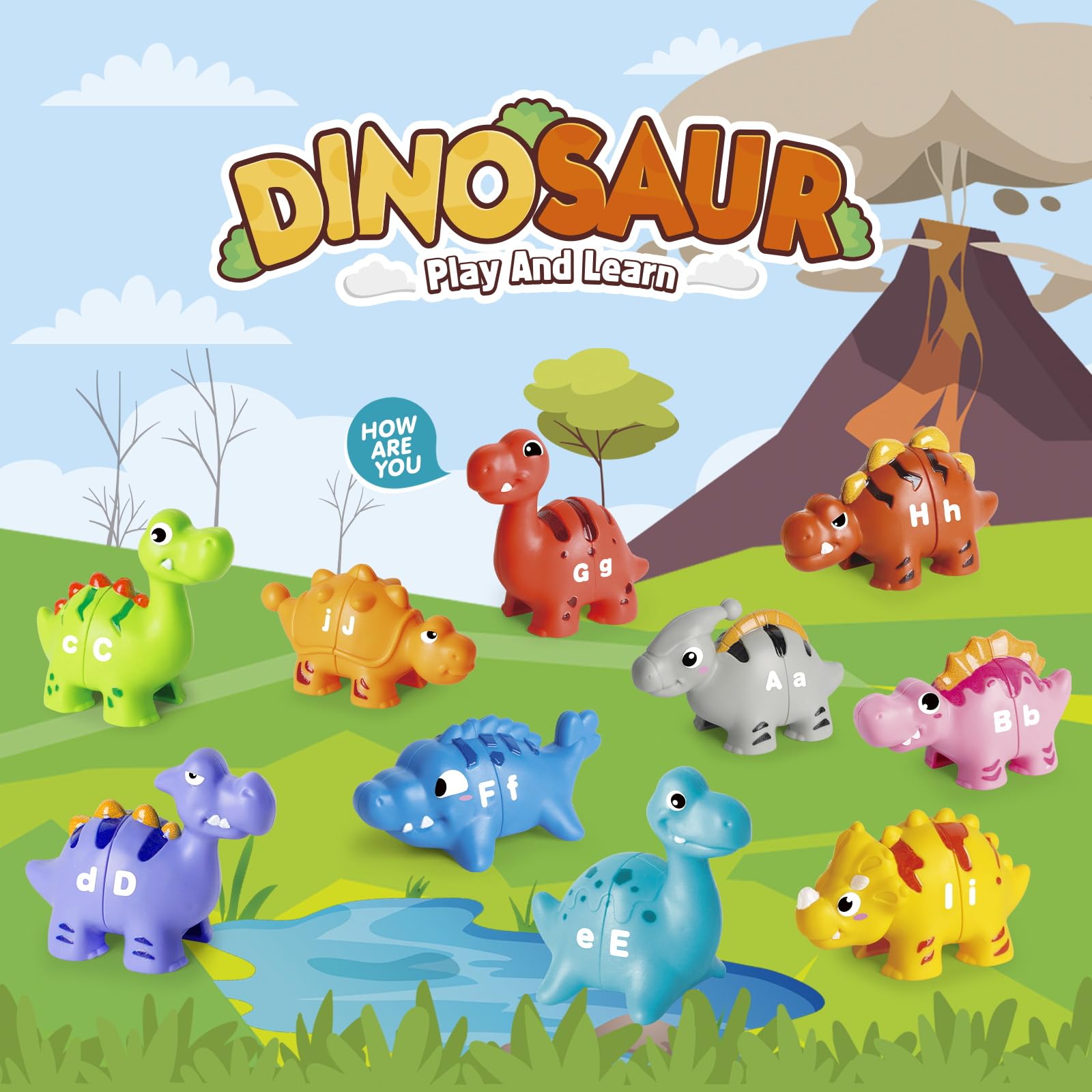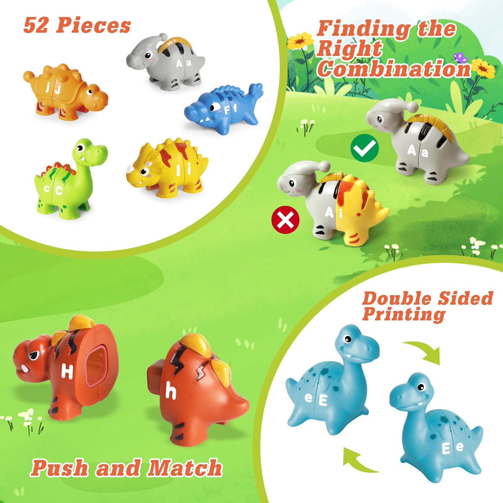 Happymate 52 Pcs Dinosaur Alphabet Learning Toys For Toddlers 2-4, 10 Different Dinosaur Figures, Double Sided Abc Matching Game