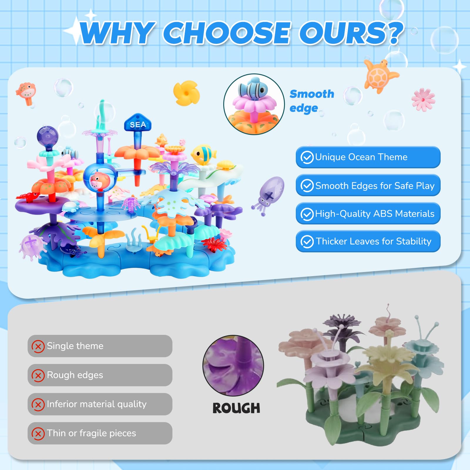 Birthday Gifts For 3 4 5 6 7 Years Old Toddlers Girls Boys - 76Pcs Marine Life Building Stacking Toys With Carry Box | Stem Preschool Educational Pretend Play | Learning Toys For Kids Age 3+