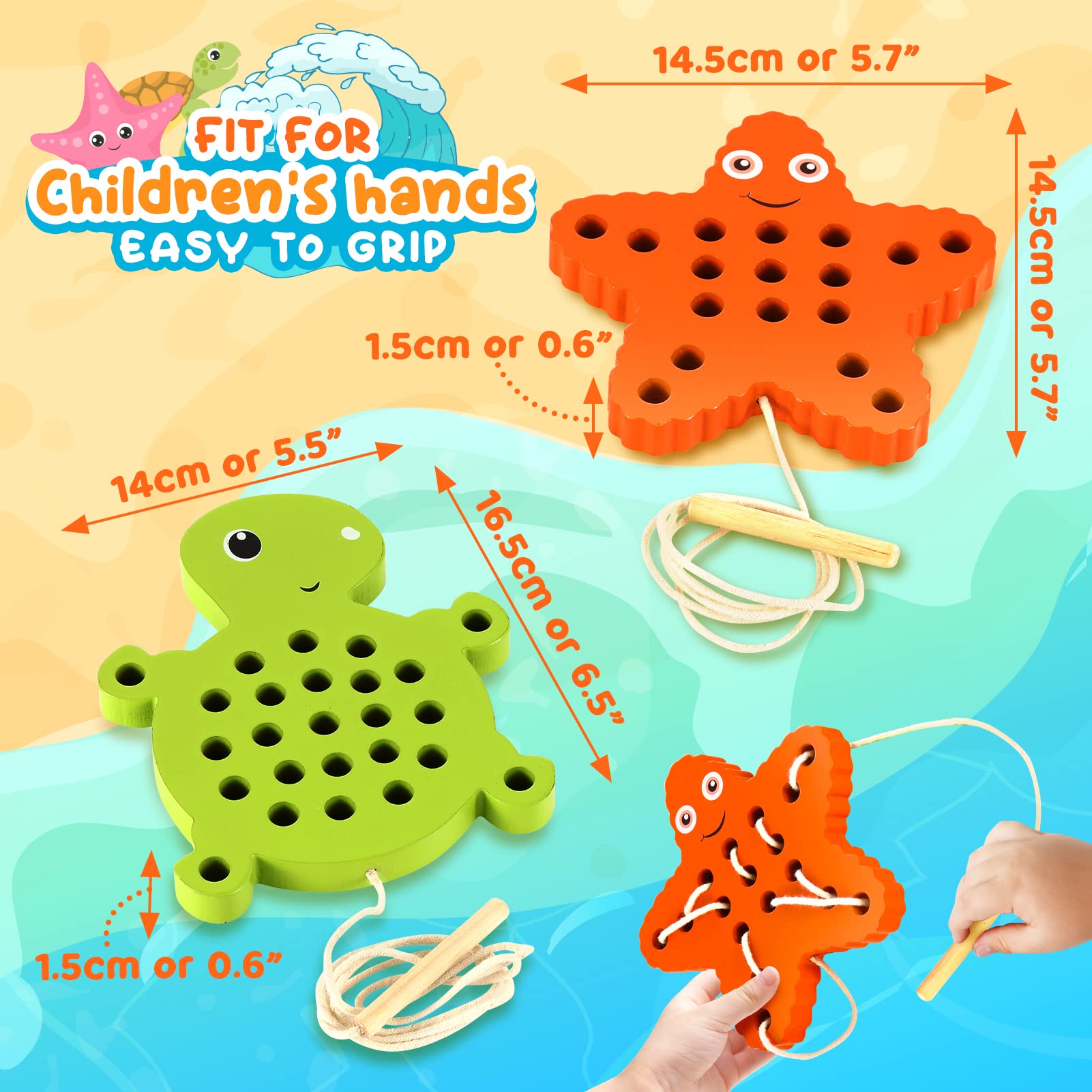 Super Fun Sea Animals Lacing Toy! It'S Eye-Catching! Wooden Lacing Turtle Montessori Toy Is Learning Toy For Toddler, Designed To Develop Lacing And Sewing Skills. The Little Rope(30 Inches) On This Starfish Toy Is Connected To The Bottom Of The Starfish That Way The Perfect Size Is Portable, Lightweight And Easy To Carry, For Your Child To Practice At Any Time. Classic Endlessly Fun Toys For Toddlers.Great Fun For Family And School, Keeps The Kids Busy For Hours. Material: Beechwood Featurs: Kids Learning Educational Toys Package Include: 1Pcs Turtle Lacing Toy 1Pcs Starfish Lacing Toy 1Pcs Cloth Bag That Is Easy To Carry We Provide High-Quality After-Sales Service;