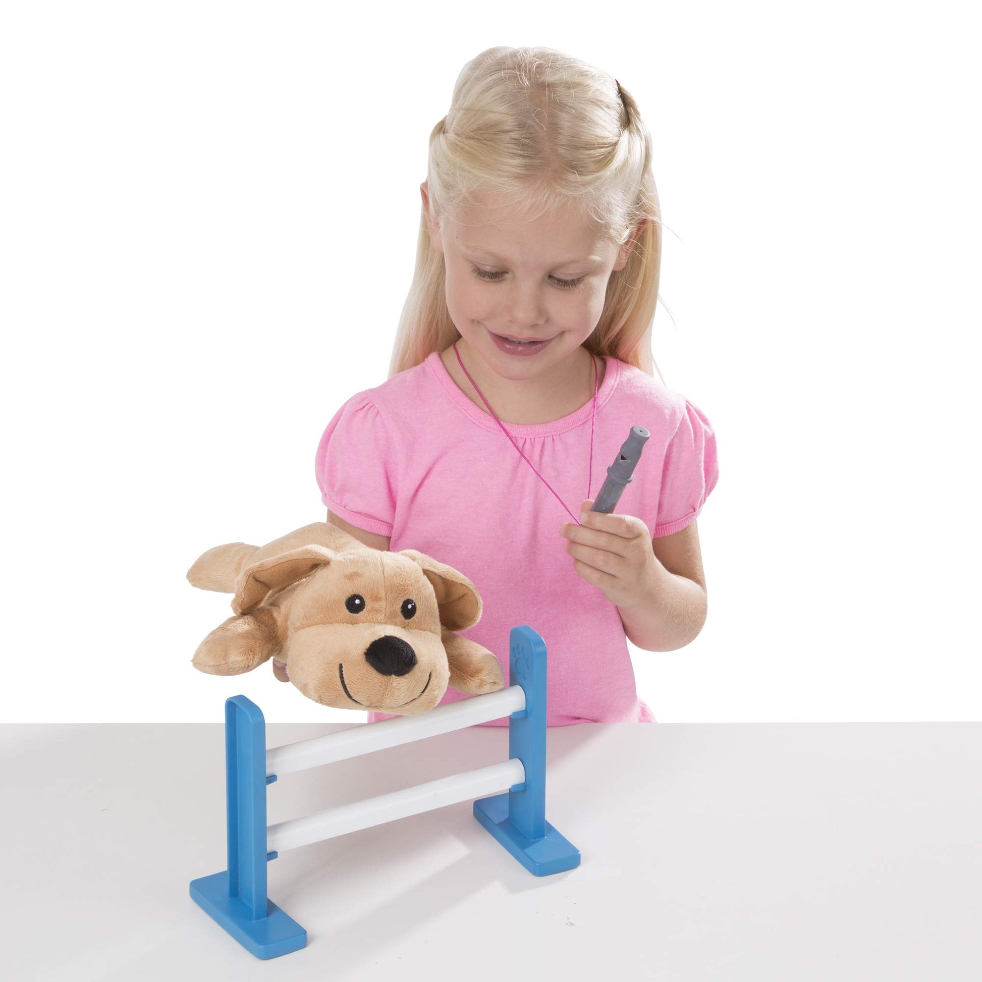 Put the plush puppy dog through its paces with pretend play agility course obstacles and training materials! Teach basic commands and agility moves, and set up obstacle courses suggested in the training manual (or create your own!) with a hurdle with two removable rails, a see-saw/folding ramp, soft agility tunnel, and activity cones. Kids three and older can be the trainer and judge at an agility competition with a dog whistle on a cord and an ID badge on a lanyard. If puppy wins, it gets the first place trophy!The Tricks & Training Puppy School Play Set encourages unique and creative play. The 12-piece pretend play puppy school set has everything kids need to teach the plush dog fun agility. All training accessories store neatly in the package with a handle. The Tricks & Training Puppy School Play Set makes a great gift for kids ages 3 years and up. Add the Melissa & Doug Examine & Treat Pet Vet play set to enrich the animal-themed, hands-on, screen-free, pretend play experience.For more than 30 years, Melissa & Doug has created beautifully designed imagination- and creativity-sparking products that NBC News called “the gold standard in early childhood play.” We design every toy to the highest quality standards, and to nurture minds and hearts. If your child is not inspired, give us a call and we'll make it right. Our phone number is on every product!