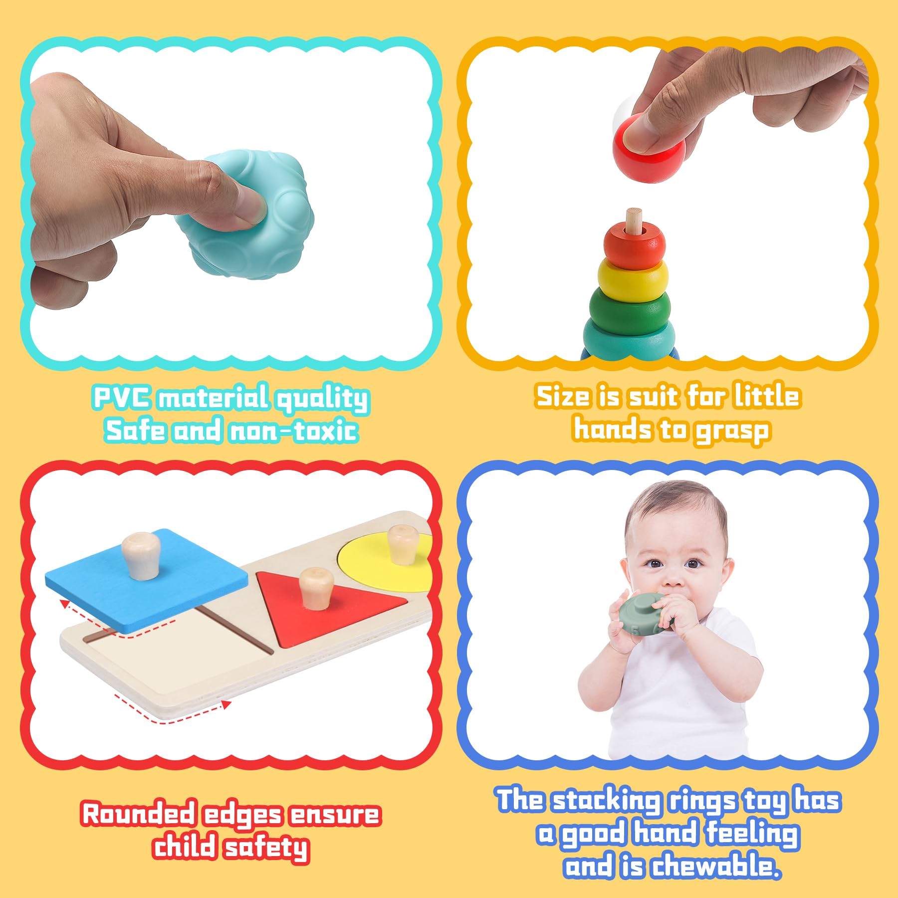 - Q: Are the materials used in these baby toys safe? A: Yes, the Montessori toys are made from natural wood and non-toxic PVC material, ensuring they are safe for babies. They also feature smooth surfaces and rounded edges to protect little hands.