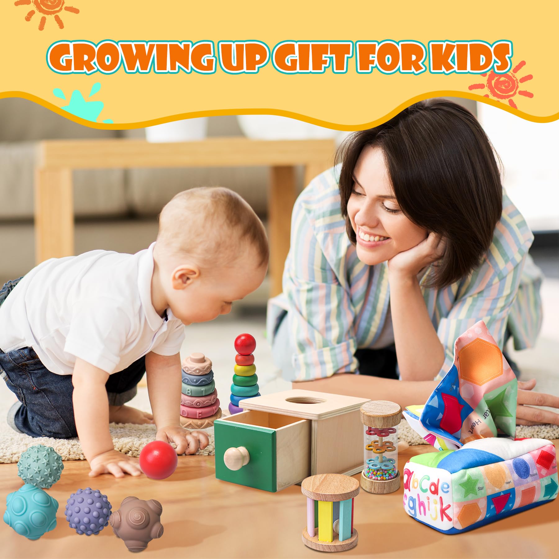 - Q: What age range is suitable for the Montessori Toys for Babies? A: The Montessori Toys for Babies are designed for infants and toddlers aged 6 to 18 months, making them an excellent choice for babies around 6-12 months and even for 1-year-olds.